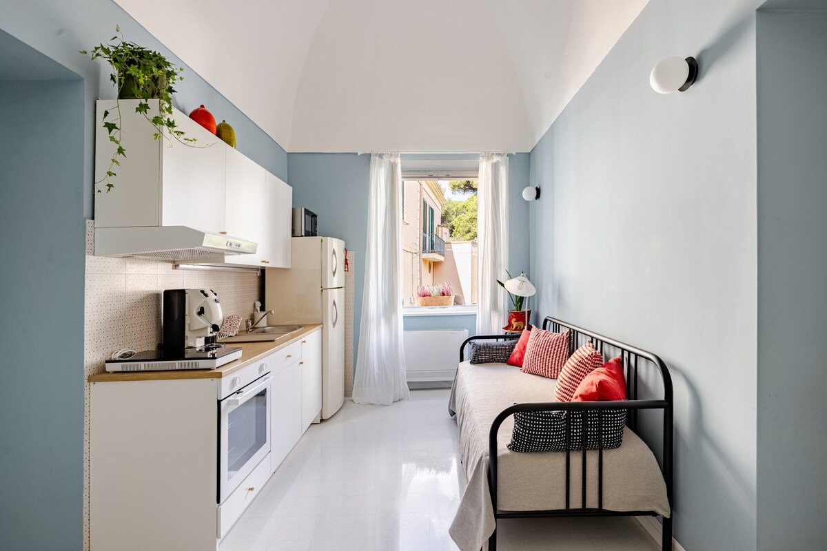 Large living room including double bed and sofà or single bed, equipped kitchen and bathroom with both shower and tub. Patio to relax outdoor and a free and private parking space. Located in the "Vesuvius National Park", between Vesuvius and the sea, away from the chaos but, at the same time, the short distance from the train station allows a comfy access to some historic cities such as of Naples, Pompeii, Sorrento, etc.