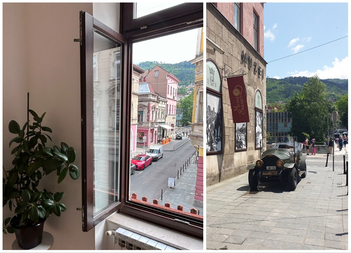 Stunning Views & Space! Heart of the Old Town, next door to Hotel Europe, this freshly renovated flat overlooks a small park and the WWI Museum. As soon as you step out of the apartment you will find Sarajevo's most famous landmarks and attractions, tons of coffeeshops and restaurants, unique shops and traditional crafts, all within few meters. Just go out and explore!:)