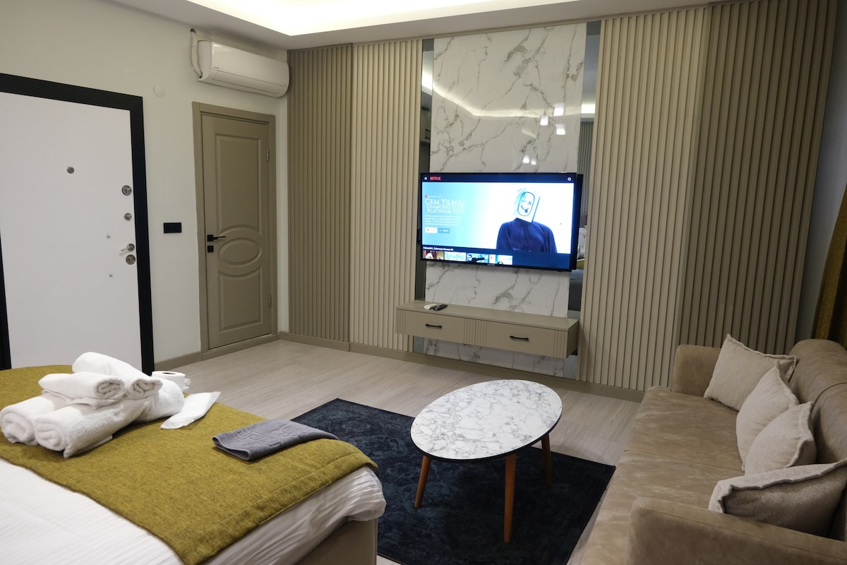 This charming hotel apartment offers a unique blend of simplicity and elegance with its modern, refined design. Perfect for two people or a couple, it includes a comfortable double bed, a well-equipped kitchenette, a private bathroom, and a 40-inch smart TV. Large windows . Ideally located just steps from Ortaköy Coast, Bosphorus Bridge, famous kumpir and waffle shops, and the historic heart of Ortaköy in central Istanbul.