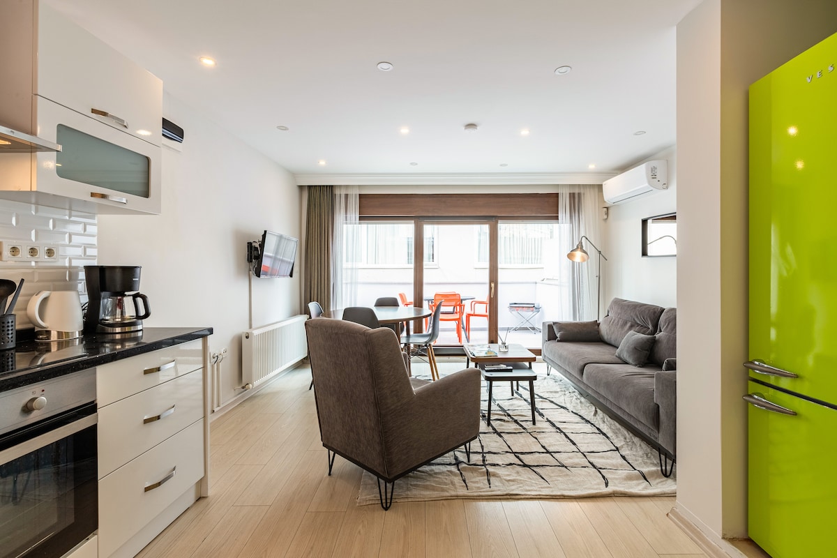 How about a peaceful and stylish stay for your comfort in Istanbul’s central, historic, and safe Beyoğlu district? Our apartment has 1 bedroom, 1 living room, a balcony, 2 bathrooms, and an open-plan kitchen. Ideal for 4 adults and 1 baby. Equipped with high-speed internet, a smart TV, and cozy touches that make you feel at home. Cook, work, or enjoy coffee on the balcony; easily reach the seaside, tram station, and historic sites. Don’t miss this comfort made just for you—book now!🫡