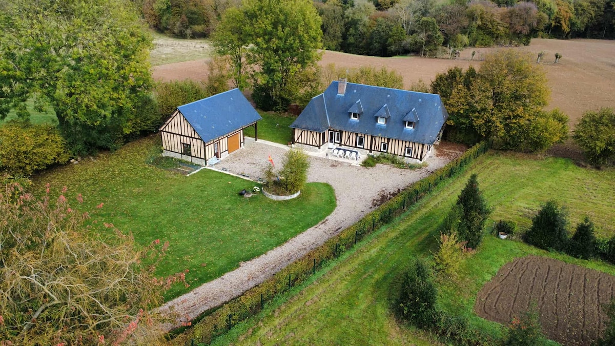 The Gîte des Forières, a charming Norman cottage, offers a spacious refuge and accommodates up to 10 people. Anchored at the gates of Normandy about 130 km from Paris and 80 km from the first beaches, our cottage is located 5 minutes from the famous Château du Champ de Bataille, our house welcomes you for an idyllic stay. Nestled halfway between Paris and Deauville, this haven of peace promises moments of relaxation in the middle of nature, whether one-on-one, with friends or family.