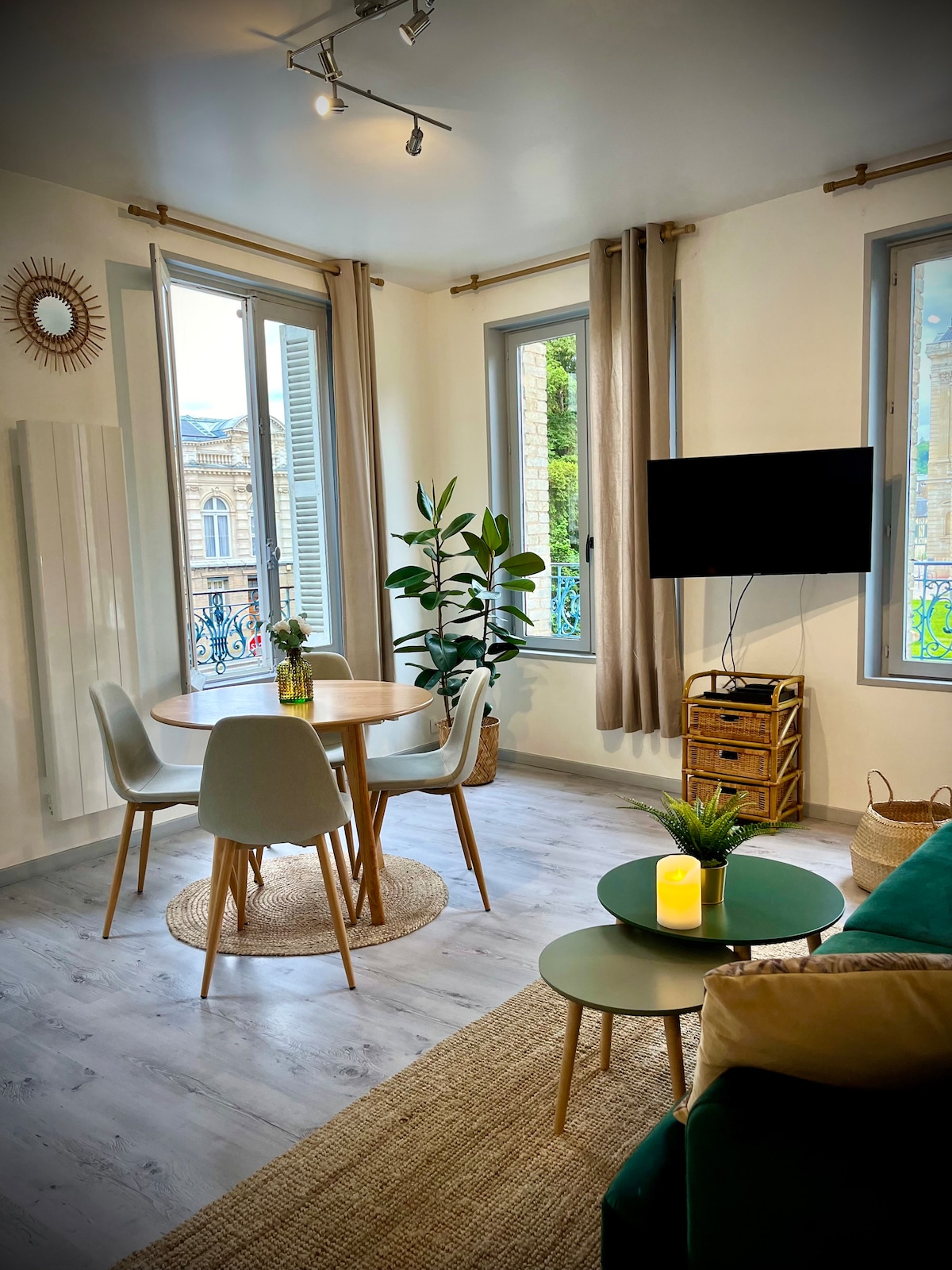 Rare appartement spacieux, lumineux et très calme de 65m2, situé en retrait sur cour en plein cœur du centre historique piéton de Rouen. Logement confortable, propre et bien insonorisé grâce au double vitrage. Il dispose d'une chambre avec literie de qualité, d'un agréable salon spacieux, d'une cuisine ouverte entièrement équipée et d'une salle de bain avec baignoire. Idéal pour un séjour confortable à deux, au calme, dans un emplacement central exceptionnel. Ménage professionnel inclus.