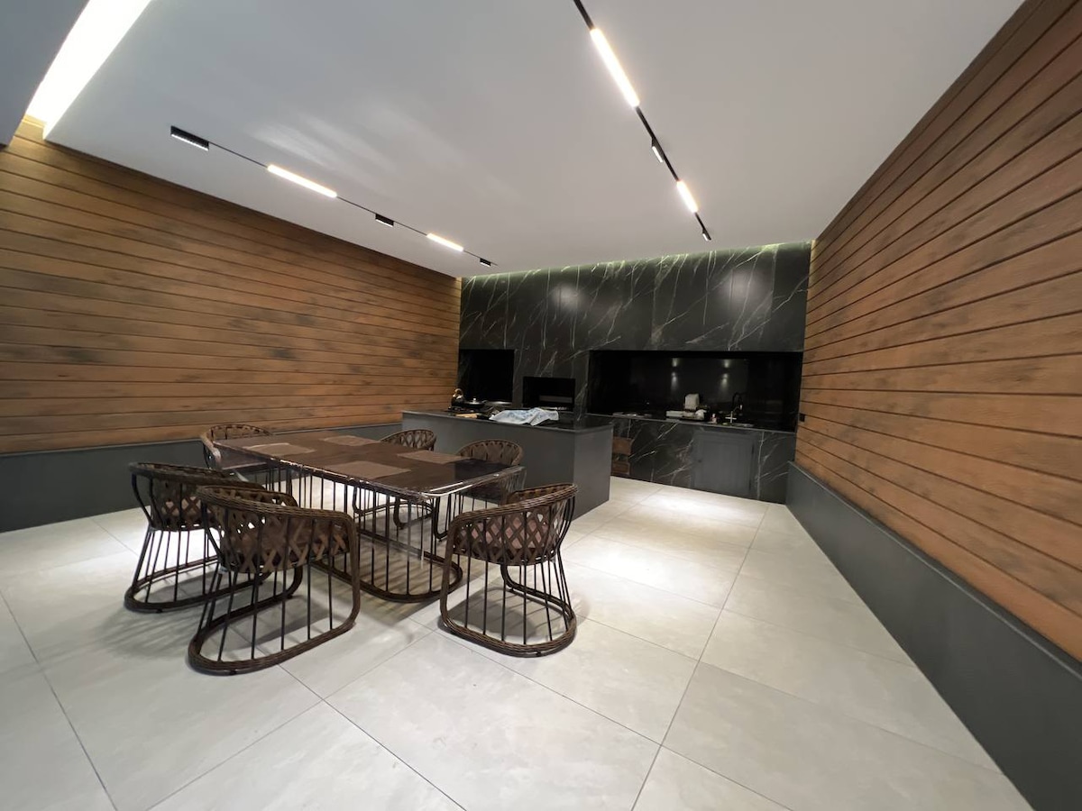 Наша вилла находится в самом уютном а также в идеальном расположение для тех кто любитель лыжного курорта а также круизного курорта, наша вилла построено так чтобы вы отдыхали с комфортом все есть мангал для шашлыка зеленое зона большой бассейн внутренний а также внешний турецкий хамам бильярд игровая приставка 3 поколение колонка для музыки и активного отдыха.