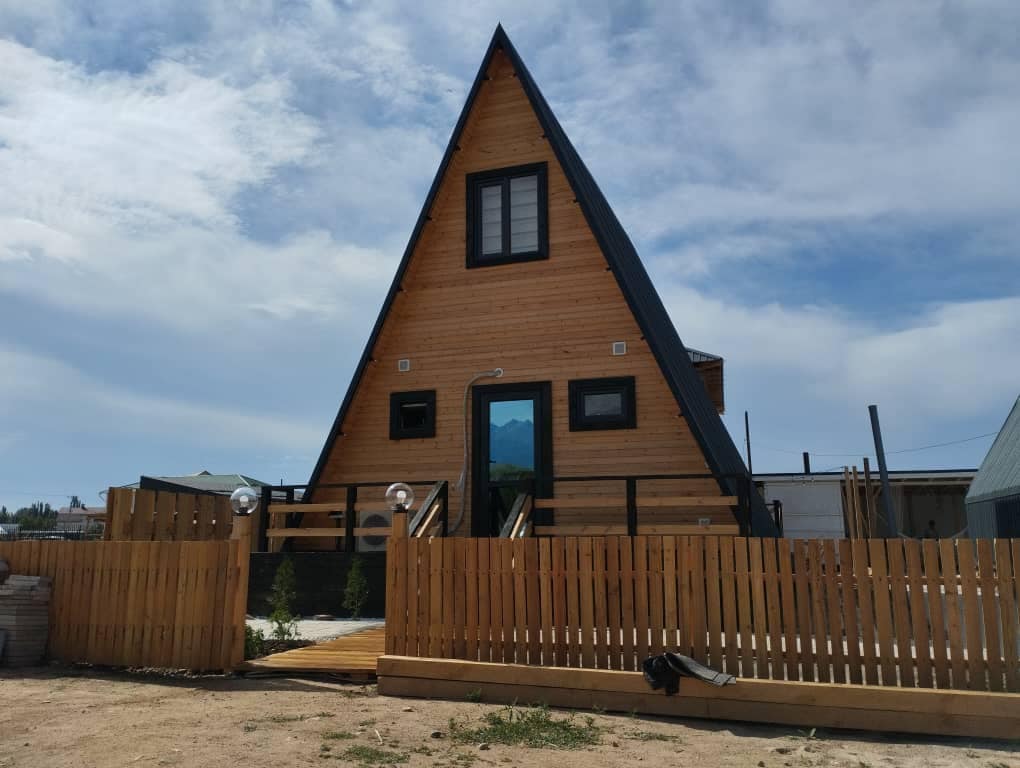A small yet cozy house in picturesque Cholpon-Ata is a perfect choice for a holiday at Issyk-Kul. Guests are welcomed by a terrace with a seating area. Inside, there is a bright interior with wooden finishes, a double bed, a dining area, and a fully equipped kitchen with a stove, refrigerator, and microwave. A modern bathroom with a shower makes the stay comfortable. The house is ideal for couples, families, and friends.