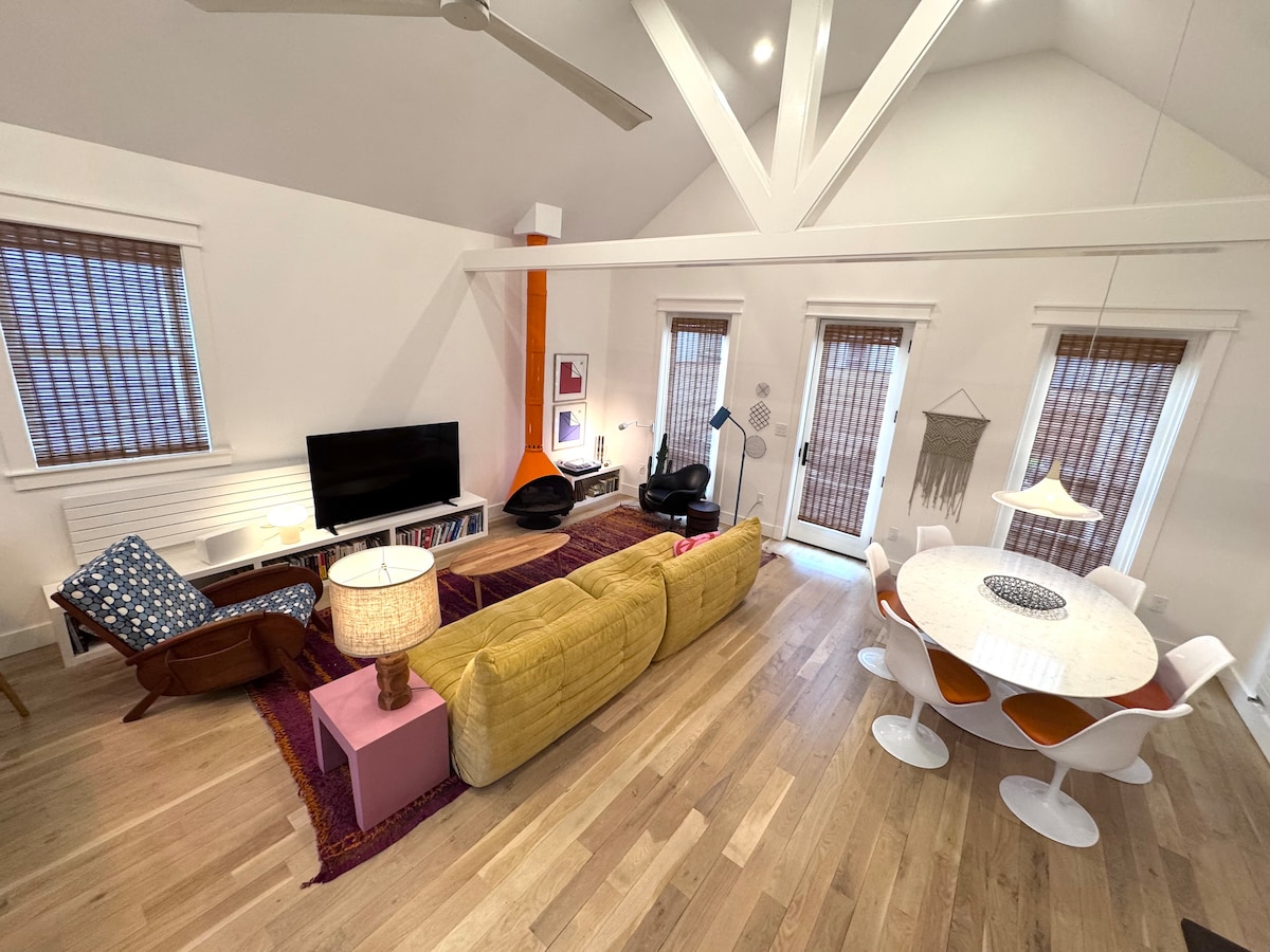 Welcome to our stylish East Boston condo! Just a 5-minute walk to the Blue Line and 11-minute drive (or 25-min walk) to Logan Airport. Only two blocks from the waterfront with stunning Boston skyline views. This modern farmhouse retreat features two cozy bedrooms plus two more beds downstairs. The sleek kitchen and dining area are great for meals or morning coffee. Relax in the comfy living room or enjoy movie nights on the 135-inch home theater. Includes in-unit laundry and off-street parking.