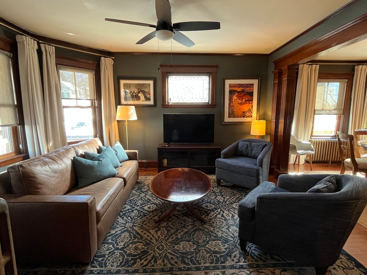 Enjoy a spacious and light filled apartment with a private entrance. This inviting unit is located in Winter Hill Somerville, an artistic city about 2 miles north from Boston. Our block is surrounded by Art studios and our neighborhood has the most exciting bars and restaurants in the greater Boston. 15 min. from Logan Airport. 1 minute walk from the new Gilman Square train station that connects conveniently to central Boston and Cambridge. 5-10 minute walk to charming restaurants and cafes.