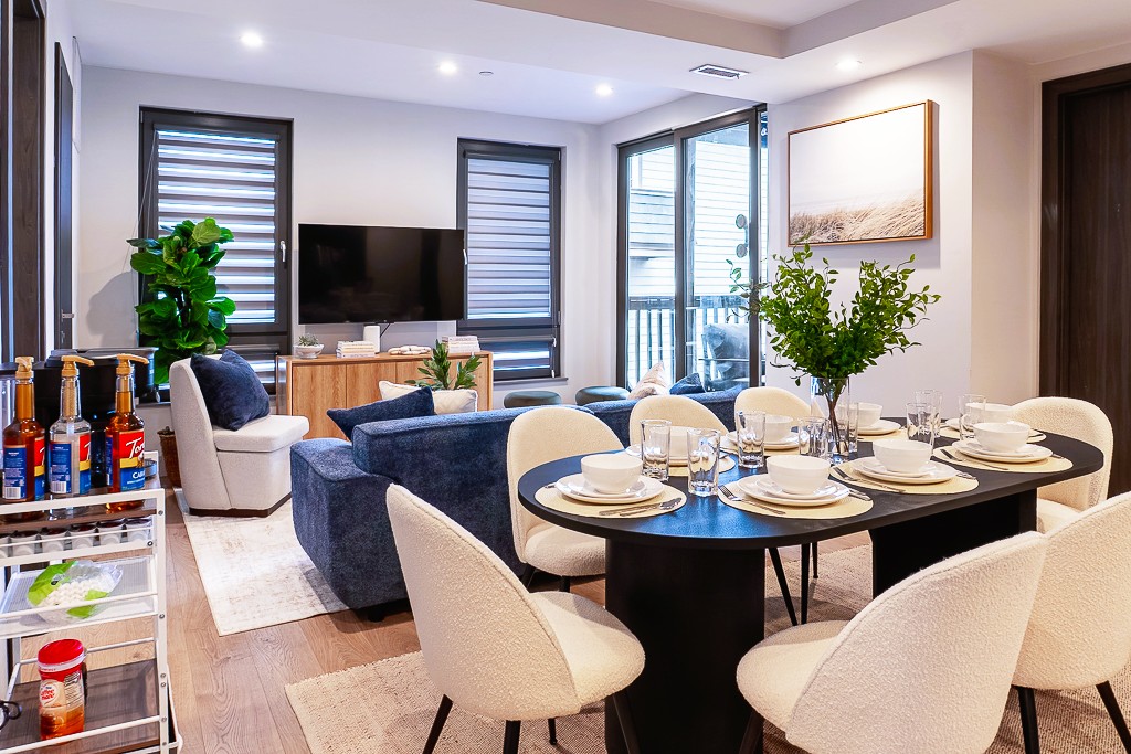 Welcome to Hipster Basecamp, a thoughtfully curated space where mid-century design meets modern comfort. Whether you're here for business or pleasure, enjoy bold touches like a double-sided fireplace, Smeg appliances, and a ceiling-mounted rain shower. Brew espresso or mix cocktails with everything at your fingertips, then head to the deck to unwind and take in the peaceful view. Admire original artwork throughout — and if a piece speaks to you, it's available for purchase.