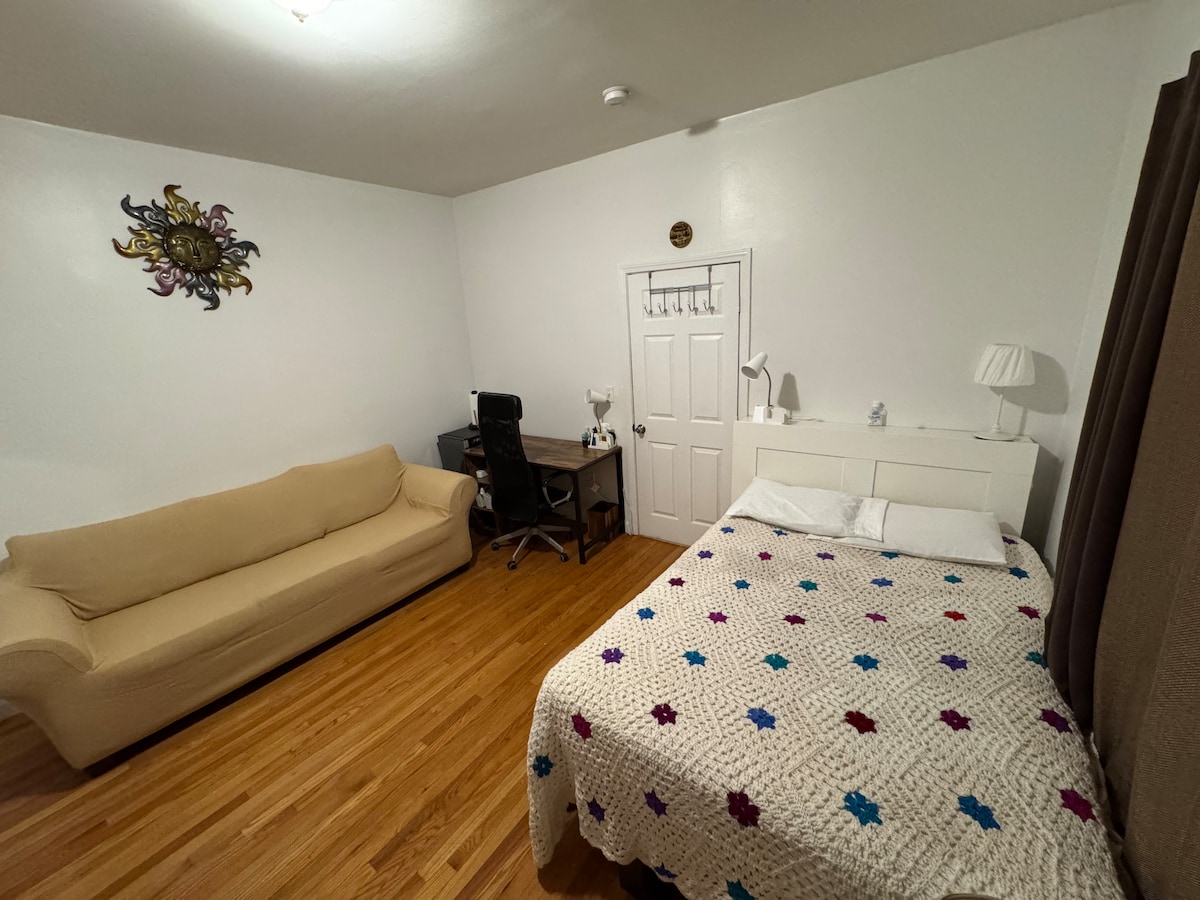 Spacious freshly renovated townhouse, part of an antique two family house. Separate entrance, private parking space. One big bedroom with a very comfortable queen size bed and huge closet. Living room has a queen size sofa sleeper, new smart TV, and two closets. Window a/c in the bedroom, window fan in the living room. Fully equipped eat-in kitchen. Brand new beautiful bathroom with a tub. For stays longer than 3 nights you can use washer and dryer that are located in the basement. (Not shared)