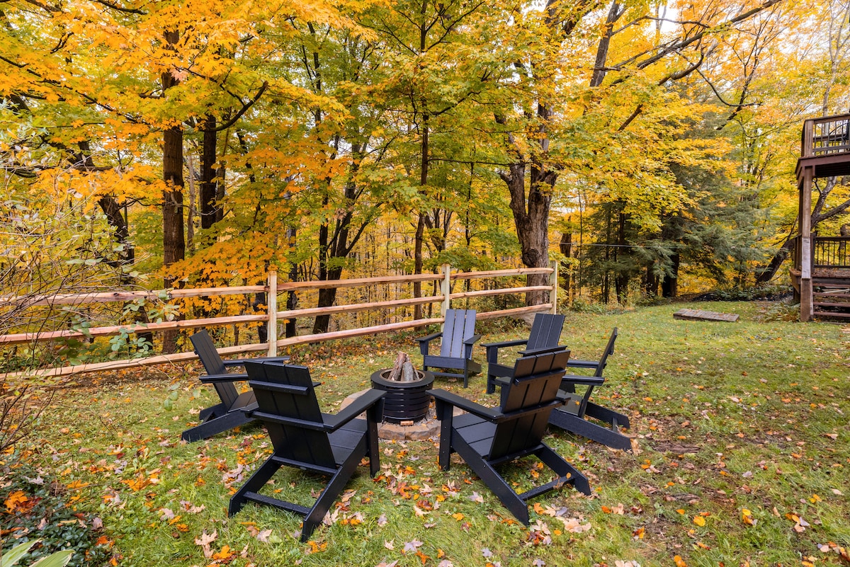 Welcome to River Rock Retreat, a haven in the heart of Cuyahoga Valley National Park. Enjoy the hot tub with a nature view and explore the private trail leading to a stunning waterfall. Unwind by the outdoor fire pit, surrounded by bistro lights, and savor a barbecue with the gas grill. Walk to downtown Peninsula's coffee shop, dining, and shops, or trails in CVNP and the Cuyahoga Valley Scenic Railroad. A short drive brings you to Brandywine/Boston Mills Ski Resorts and Blossom Music Center.