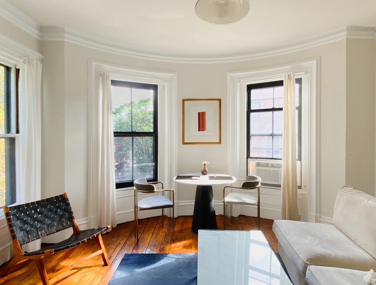 Welcome! Our cozy 2 bedroom (king+queen beds) haven offers the best: quiet yet close to everything. Piers Park's stunning water & city views are a 2-min walk. 4-min Uber to the airport, 3-min walk to subway (2 stops from downtown), and ferry to Aquarium/North/Seaport. Nearby, find affordable groceries, 4.5+ star dining, and a yoga studio next door. Recently renovated in New England brownstone style. Parking available 3 mins away for an additional fee. Join us for an amazing stay!