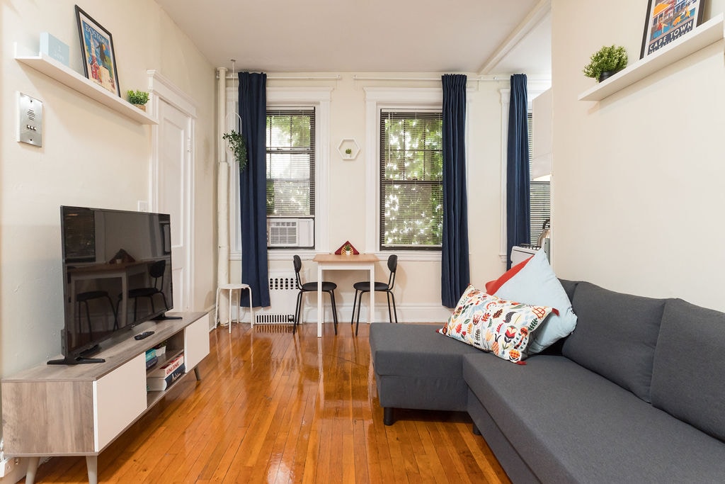 Experience Boston in this incredible eye-catching studio. Comes with a room divider for 1 bedroom like feel! Just a 5 min walk from the T and close to Boston College/Harvard, you can engage with all of Boston tastefully. Unit Features -> Blazing Fast WiFi -> 65” SmartTV with Streaming -> Fully Stocked Kitchen -> Washer & Dryer -> Comfortable Queen Bed Ideal for business travelers, couples, nurses, those in hospital treatment and everyone looking to experience Boston in comfort and peace.