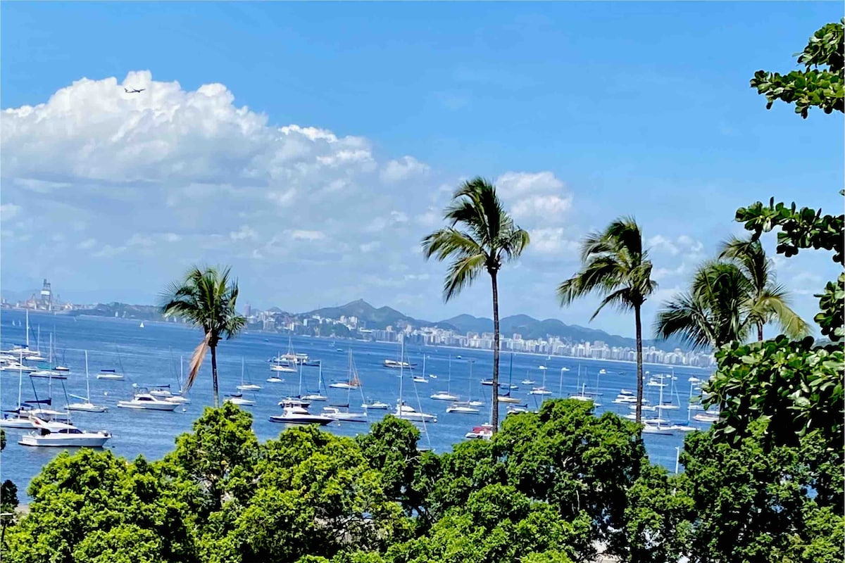 Imagine yourself facing the most spectacular view of Rio de Janeiro, its bay, the touristic wonders of The Sugar Loaf & The Christ, between the Tropical forest and the exciting urban life, in a very confortable apartment located on an independent floor of our house, with many terraces, a garden full of fruit trees (mango, banana, acerola, passion fruit, tangerine, graviola, amora), relaxing in a swimming pool or having a nice barbecue with your friends. Welcome to our little paradise!