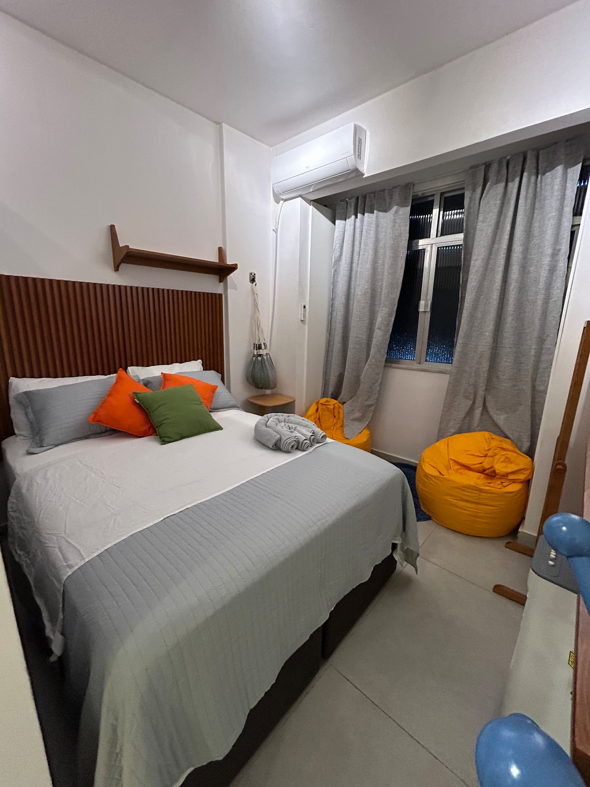Acomodação tranquila, 22m2, com 1 cama de casal, 1 sofá cama (SOLICITAR A MONTAGEM DO SOFÁ CAMA, SE NECESSÁRIO), TV, WiFi, micro-ondas, purificador de água, forno de indução e panelas, cafeteira, geladeira, ar-condicionado, roupas de cama e banho. Apartamento (lateral) localizado em área nobre do Rio de Janeiro, na Praia de Botafogo. Nas redondezas tem shopping, restaurantes, lavanderia, comércio diversificado, cinema, aluguel de bike, metrô e fácil condução para pontos turísticos da cidade.