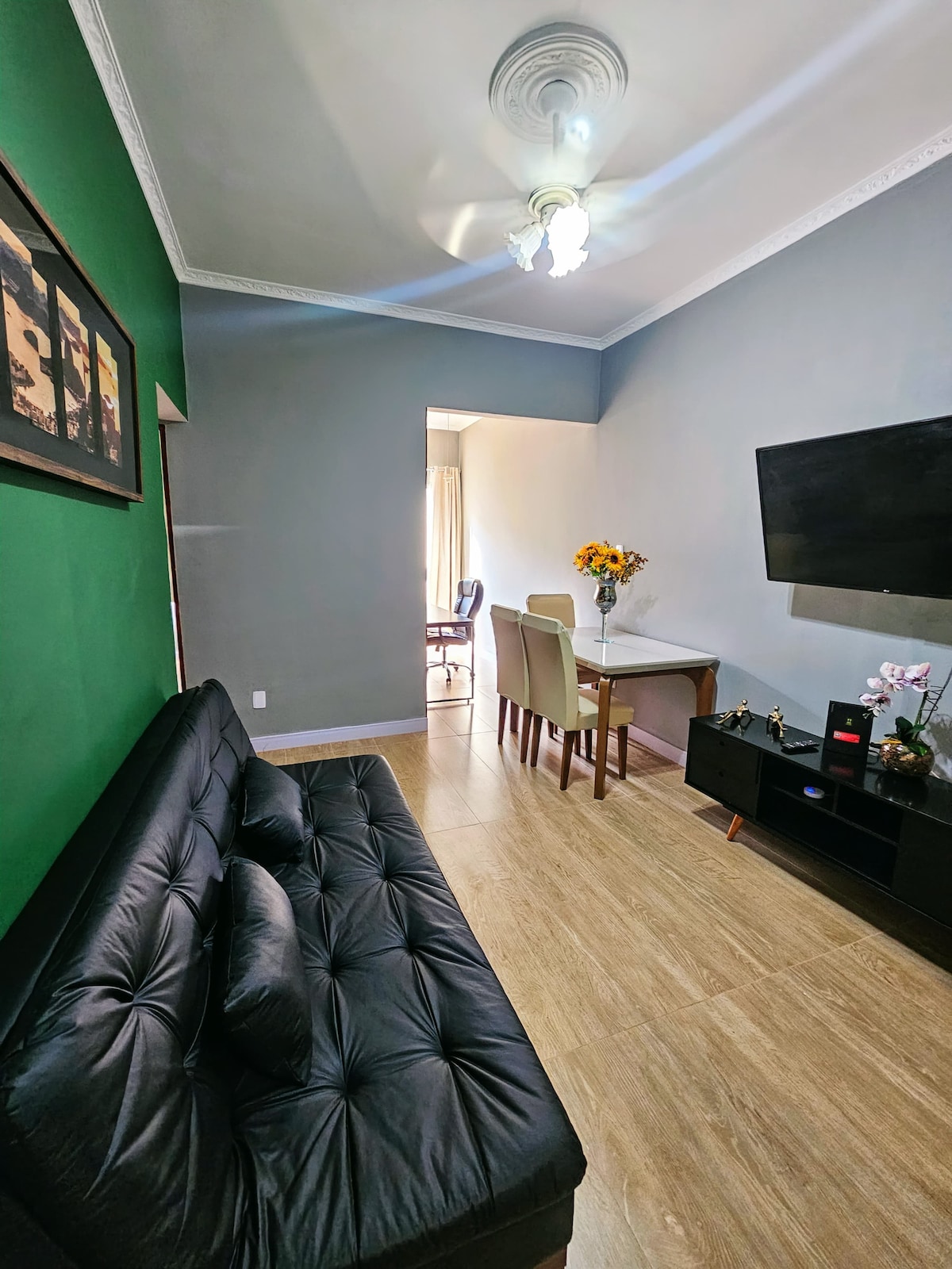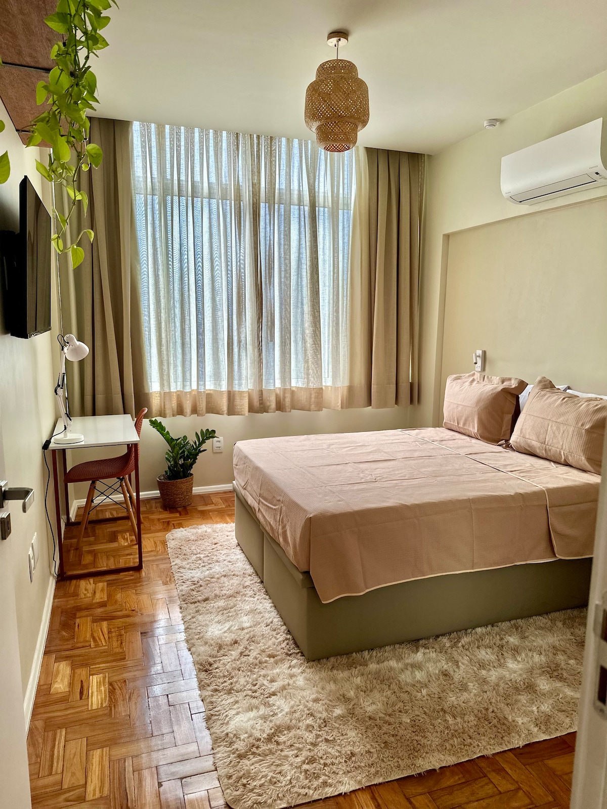 (Whole apartment!) Our quiet, comfortable space is ready for you! You'll have a kitchen with a washing machine and dishwasher, sunny living room with deck and spa, private bedroom with soundproof windows, a queen-sized bed, fiber broadband, WIFI, and suite bathroom with bathtub and shower. Botafogo is extremely walkable, and there's plenty of public transportation nearby. We are a 2 minute walk from the subway! Lay back, relax, and enjoy! We hope you enjoy your stay with us!