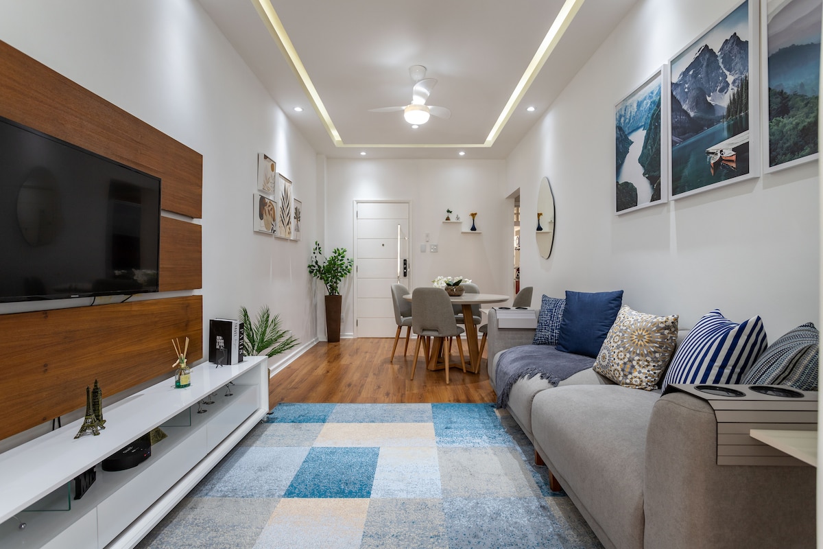Estiloso e aconchegante STUDIO em Botafogo. A localização é excelente: Prédio em frente a Praia de Botafogo, 100 metros do Metrô, Botafogo Praia Shopping (5 minutos à pé); Restaurantes, Ciclovia; Supermercado, Bancos e etc. Fácil acesso a todos os pontos turísticos da cidade. Fechadura digital com senha exclusiva