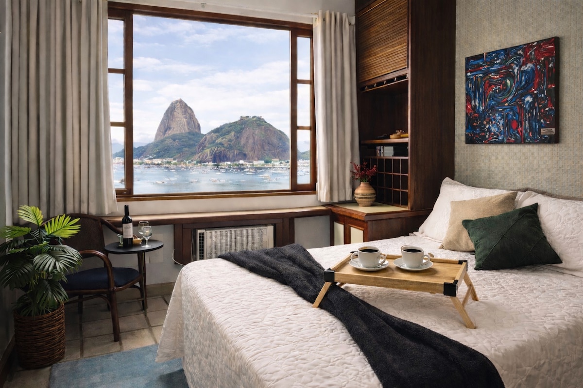 Viva a inesquecível experiência de assistir da janela o nascer do sol na Enseada de Botafogo, diante de um dos cartões postais mais famosos e lindos do mundo: O Pão de Açúcar. Você não precisará nem sair da cama, basta afastar as cortinas e assistir o espetáculo de camarote. Nenhum hotel oferece este privilégio.