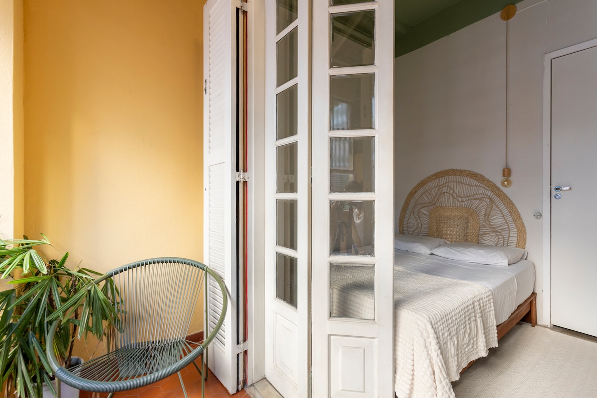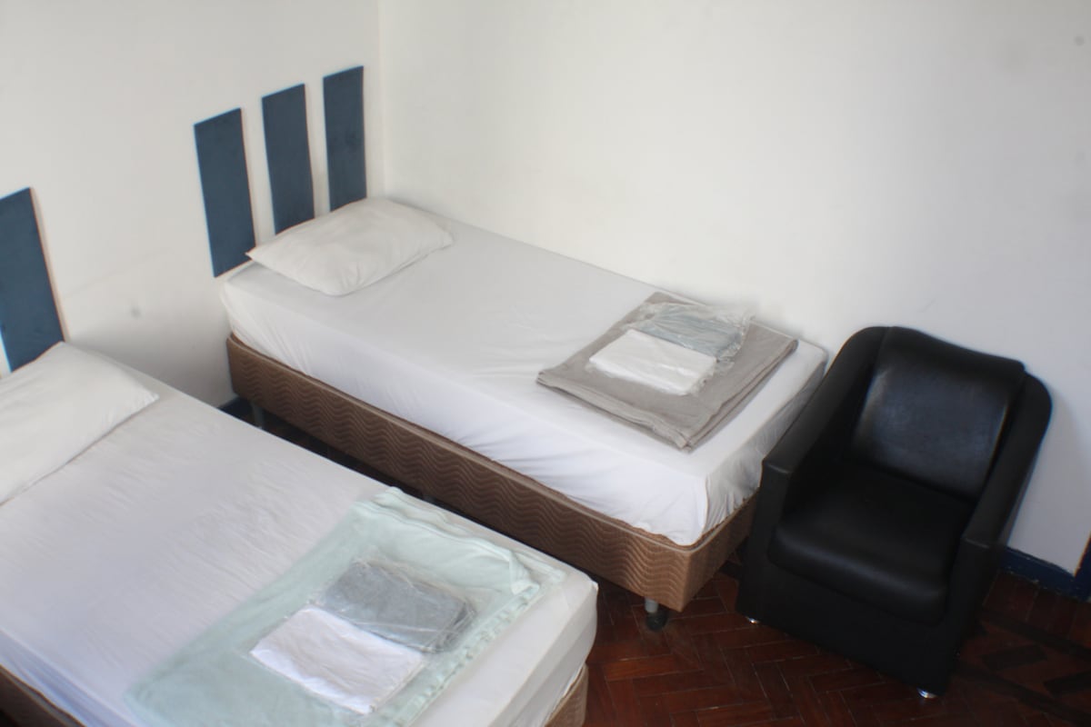 Room with 5 single beds and shared balcony. In a beautiful and renovated house. Located at the heart of Rio south side in a quiete and safe street. Close to the subway, shops, bars and restaurantes. Ceiling fan, full equipped kitchen and living room