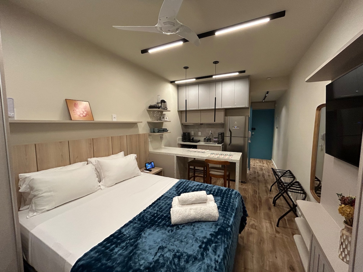 Venha curtir Copacabana! Studio totalmente reformado, rua tranquila, ar condicionado e ventiladores, workstation e internet de alta velocidade, smart tv, máquina de café Nespresso. Localização privilegiada, apenas 02 quadras da belíssima praia de Copacabana além de restaurantes, bares, mercados, farmácias, lojas e 200m da estação de metrô. São ambientes independentes, cozinha, banheiro, sala e quarto (cama casal e sofá cama) Tenha uma ótima estadia! :)