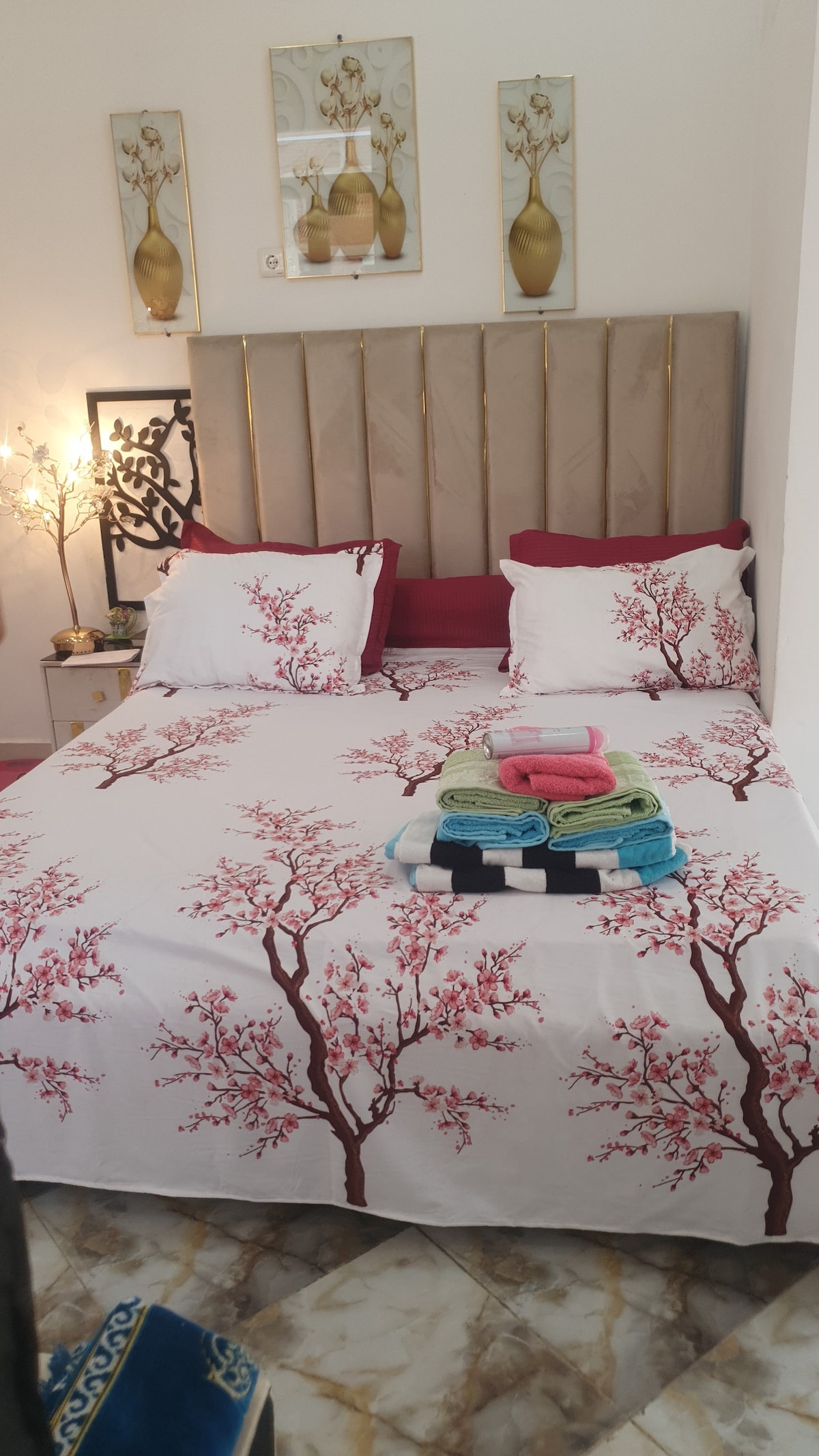 Profitez d'un logement élégant et bien équipé en plein centre d'Alger à quelques pas du jardin d'essai. Proche de toutes commodités, tramway et métro à 5 min. Résidence calme avec vue sur mer et sur le monument des martyrs. - un grand lit et un canapé convertible - une terrasse - une cuisine ouverte - une douche et un WC l'appartement est équipé d'un climatiseur