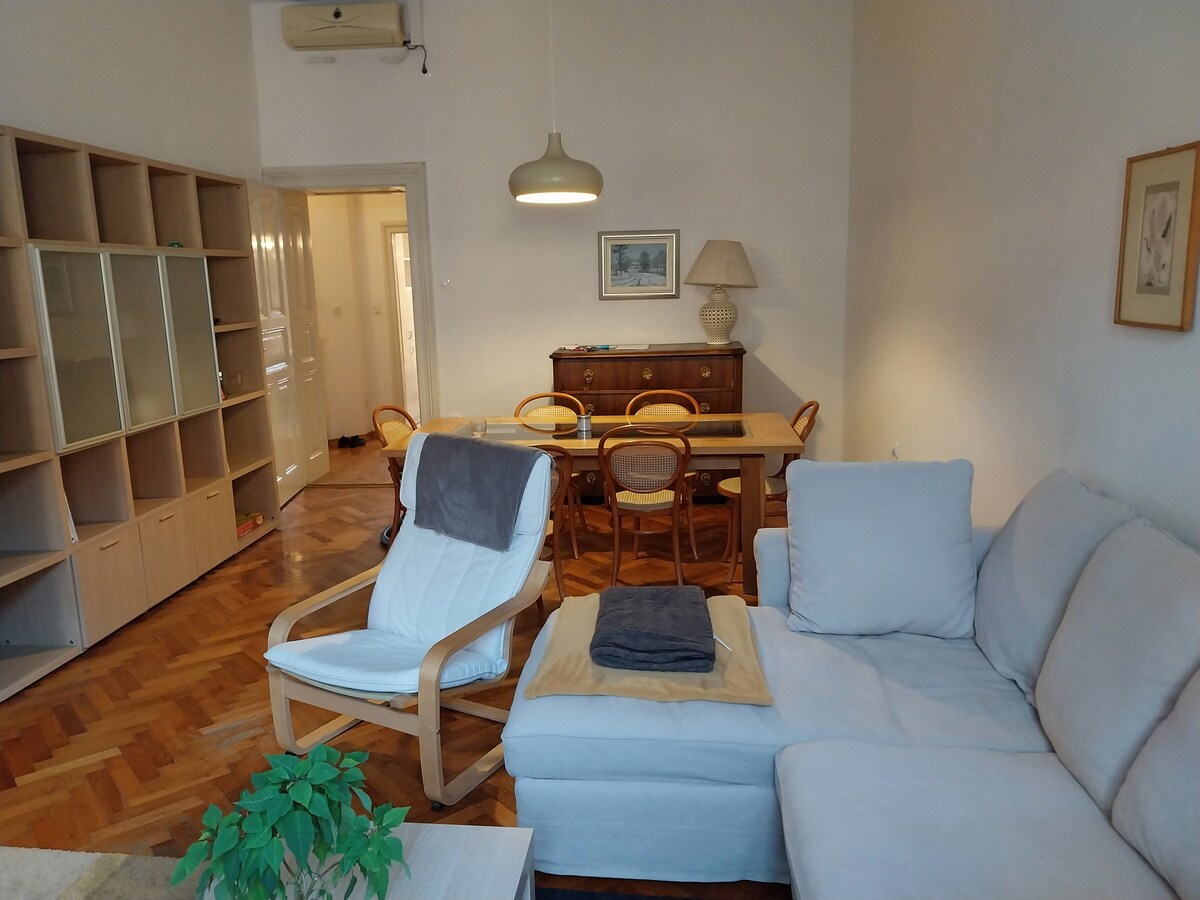 Warm oasis in the center of Zagreb, in a quiet green courtyard, away from rush and traffic, short walk from main square, pedestrian area and all downtown sights If you're arriving early, before check in, you can drop off your bags from 11am Apartment offers all the amenities traveler needs: Sparkling clean, fully equipped kitchen(+all basic ingredients), 55" TV, supermarket across the street, children playground and a free parking! *Reservations from France and Belgium are not accepted*