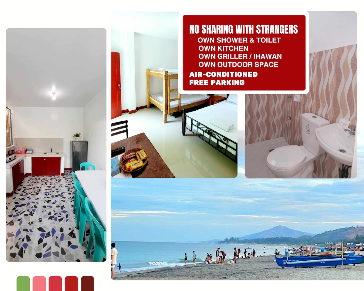 A very relaxing small place to watch the beautiful sunset during summer. This place is a perfect getaway for a weekend relaxation on the beach front view of the West Philippine sea. Ideal for a family of 4 or couple for a romantic getaway and it is free from the hustle and bustle of the crowded and heavy traffic metro. The number of guest is negotiable upon reaching the maximum occupancy and it will be charged accordingly upon booking, undeclared companion will be charged upon check in.