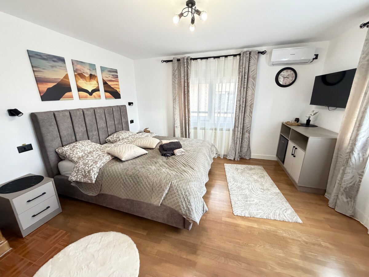 Enjoy a relaxing stay in Suceava in a perfectly located apartment, close to parks, restaurants, and public transport stations. We offer free parking and self check-in for total flexibility, no matter your arrival time. Explore the city’s attractions on foot: green parks, cozy cafés, restaurants, and points of interest all just minutes away. The airport is only 15 km away. An excellent choice for a city break or business trip – book now!