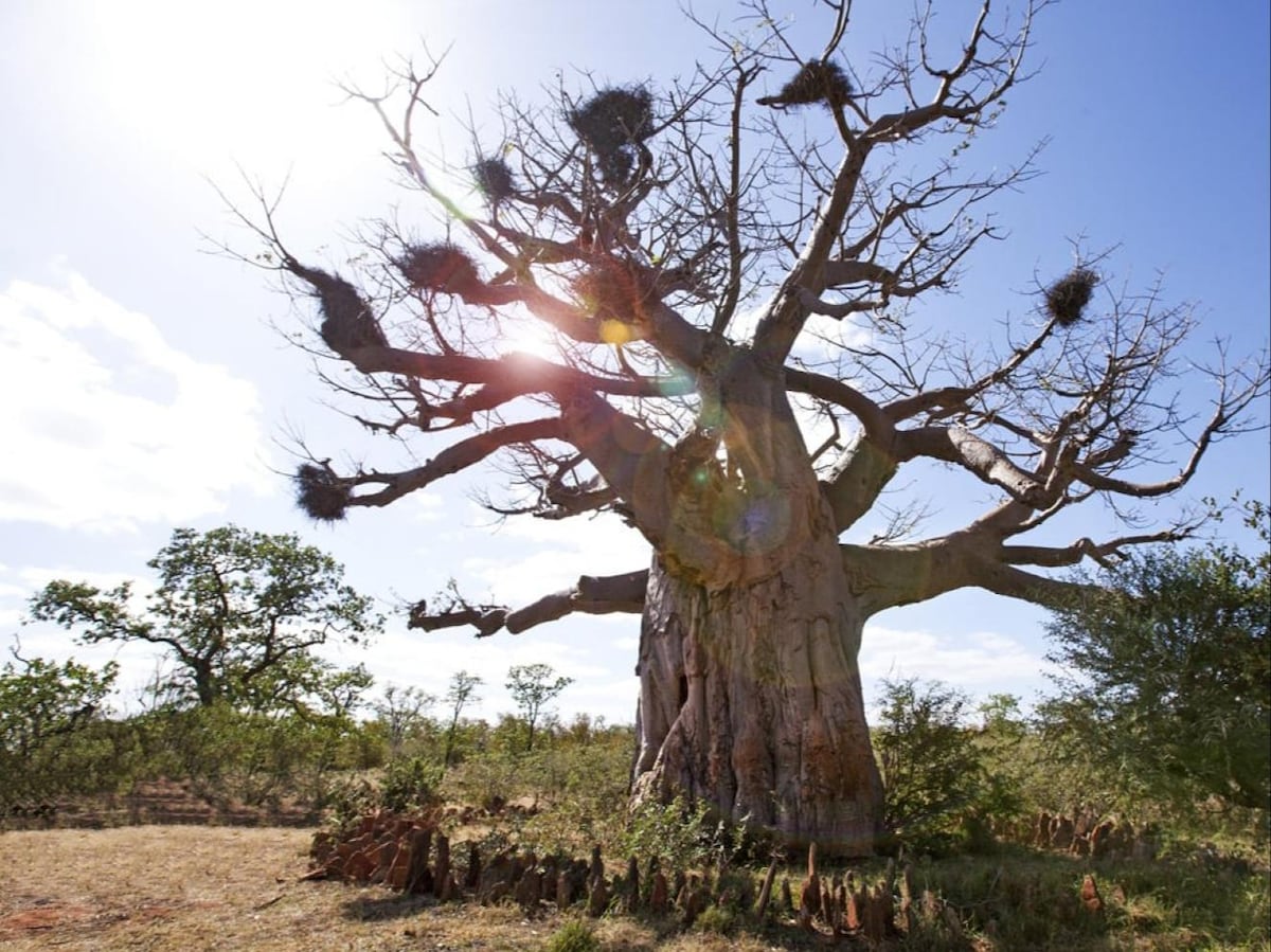 Termite Villa sleeps up to 6 guests in 3 en-suite bedrooms. Two upstairs rooms with queen bed, bathroom & viewing decks. Downstairs a twin room with en-suite. The downstairs room opens up onto the living area. The bathrooms have a shower, loo & basin and rooms are equipped with mosquito nets, fans & charging ports. The kitchen is fully equipped with a gas cooker & fridge/freezer. There is a dining area & lounge/bar which is open & airy & a fire pit with camp chairs and BBQ facilities.