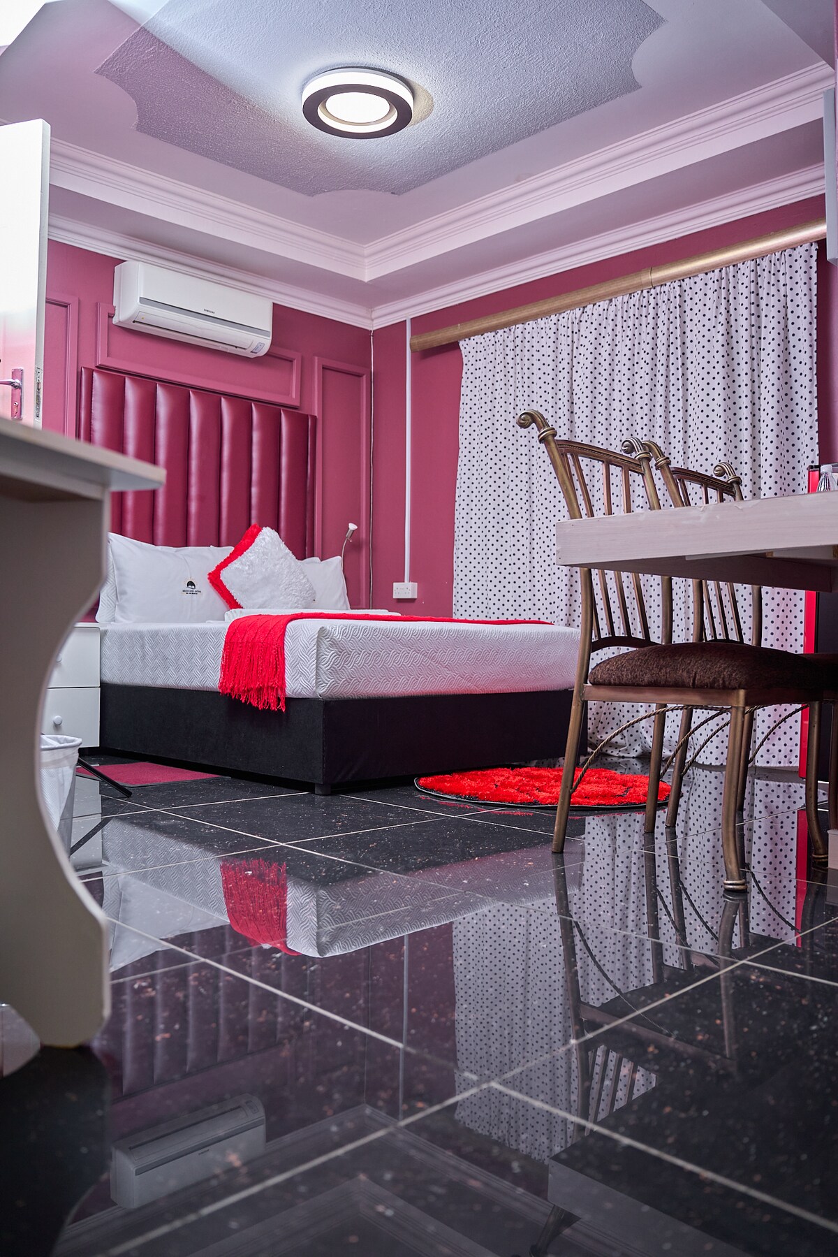 Enjoy a spacious, serene space in central Gaborone. Ideal for you and your family, this home has 3 bedrooms available with beautiful living spaces, outdoor dining area and pool. A hostess is on hand to assist guests. A double bed in is provided in bedroom one and a 3/4 bed in bedroom two, suitable for a solo guest or accompanying child. A third bedroom is has two single beds. Make our home your quiet getaway.