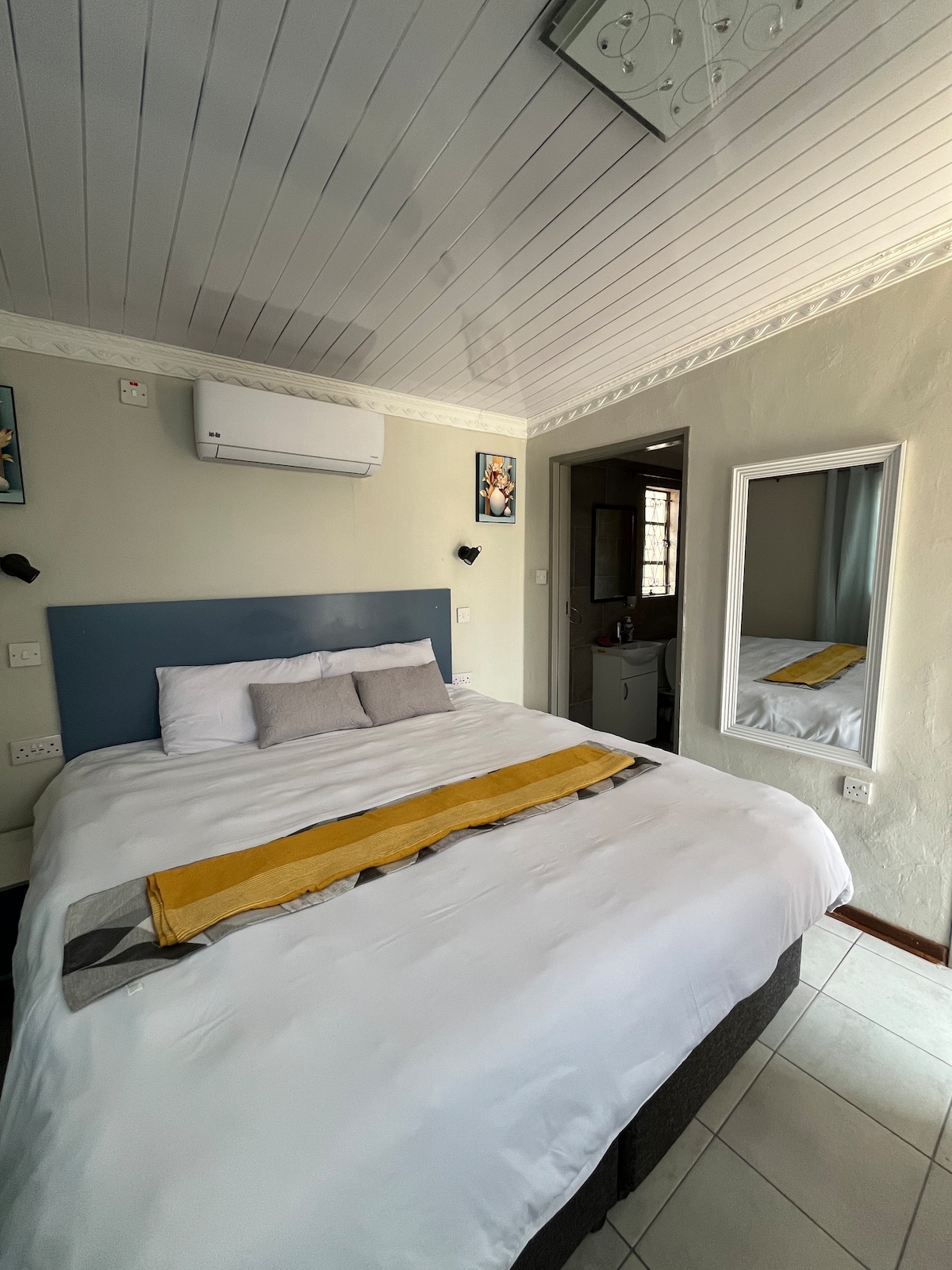 Enjoy a cozy en-suite one-bedroom in a central location. Perfect for couples or solo travelers, this comfortable space features air conditioning, fast Starlink WiFi, and an HD Smart TV. Offering privacy, convenience, and easy access to shops, restaurants, and key amenities—your peaceful retreat in the heart of it all.