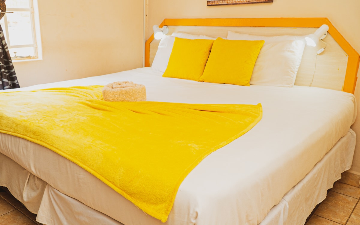 Take a break at this unique and tranquil space. Our space is nestled in the outskirts of Gaborone (Lion park) and gives you the freedom of staying in a natural setting with beautiful sunrises and sunsets. Imagine waking up to the beautiful singing of birds in an undisturbed natural setting, which is punctuated by the roaring of non other than the king of the jungle himself. This appartment is beautifully furnished with a bedroom and an open plan kitchen for self catering.