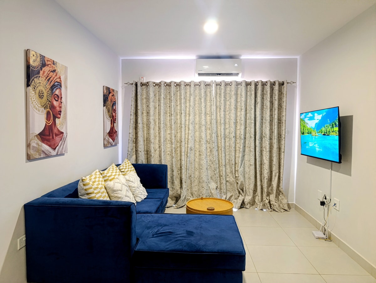 Relax in a fully air-conditioned 3 bedroom comfortable home with a private pool, and a fully equipped kitchen. Stay connected with high-speed Starlink Wi-Fi and Smart TV, or unwind outdoors with board games, BBQs, and private seating. Private parking and top-notch security give you peace of mind. Just minutes from the CBD, Airport Junction Mall, and the airport (transfers available), this home is perfect for families, friends, or business travelers seeking comfort and convenience.