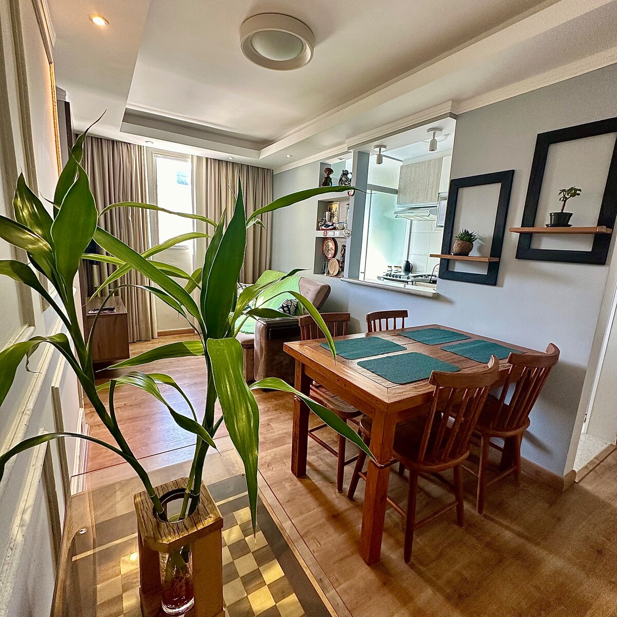 Lugar aconchegante, privativo e muito bem localizado, a 2 minutos do centro, a 3 minutos do shopping e supermercado confiança. Inteiramente mobiliado com design rústico, ventiladores de teto silenciosos na sala e quarto, utensílios de cozinha, jogo de cama, manta, toalhas de banho, toalha de rosto. Apartamento localizado no segundo andar, ideal pra quem não quer subir muitos degraus e ter a sua privacidade.