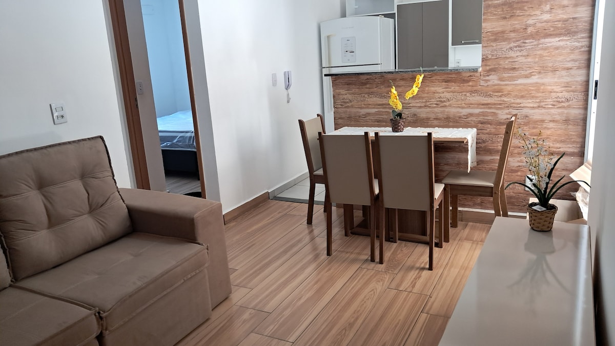 Apartamento completo e equipado com todos os utensílios e eletrodomésticos necessários para seu conforto e comodidade. Localizado na região mais bem estruturada da cidade com fácil acesso a mercados, serviços e comercio.