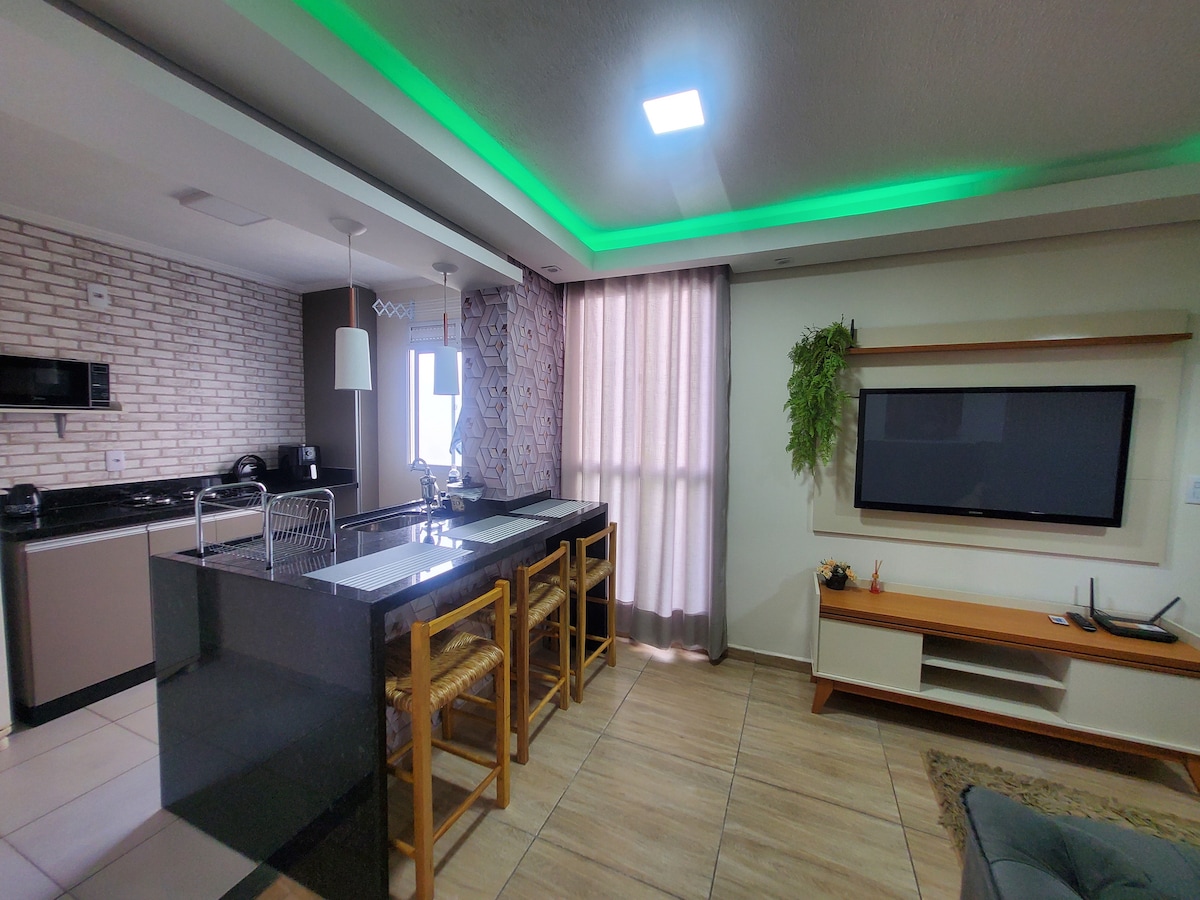 Apartamento completo e confortável, contém tudo que você precisa para ter uma ótima hospedagem! Condomínio seguro , portaria remota, câmeras de segurança , a 600 metros de supermercado,MacDonalds,restaurantes e farmácias. disponível para estadias longas e curta.