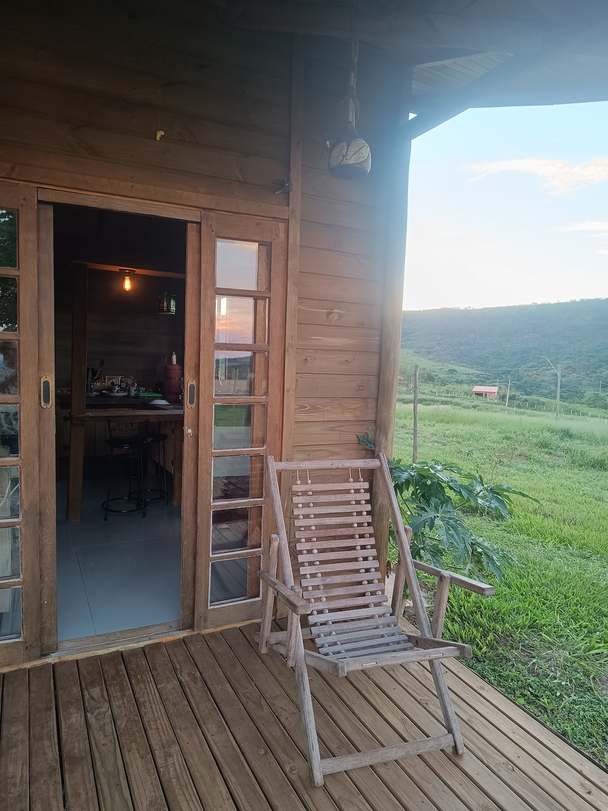Chalé para Casal com Frigobar, ar-condicionado quente e frio, fogão churrasqueira , área de fogueira e muito mais, é um local para contemplar a natureza, tendo um mirante que dá a visão de toda Cuesta de Botucatu, vista direta do morro do Peru e túnel do trem, que é possível visitar, qualquer dúvida só chamar, estou buscando sempre melhorar para atendê-los melhor (chacara recanto da cuesta)
