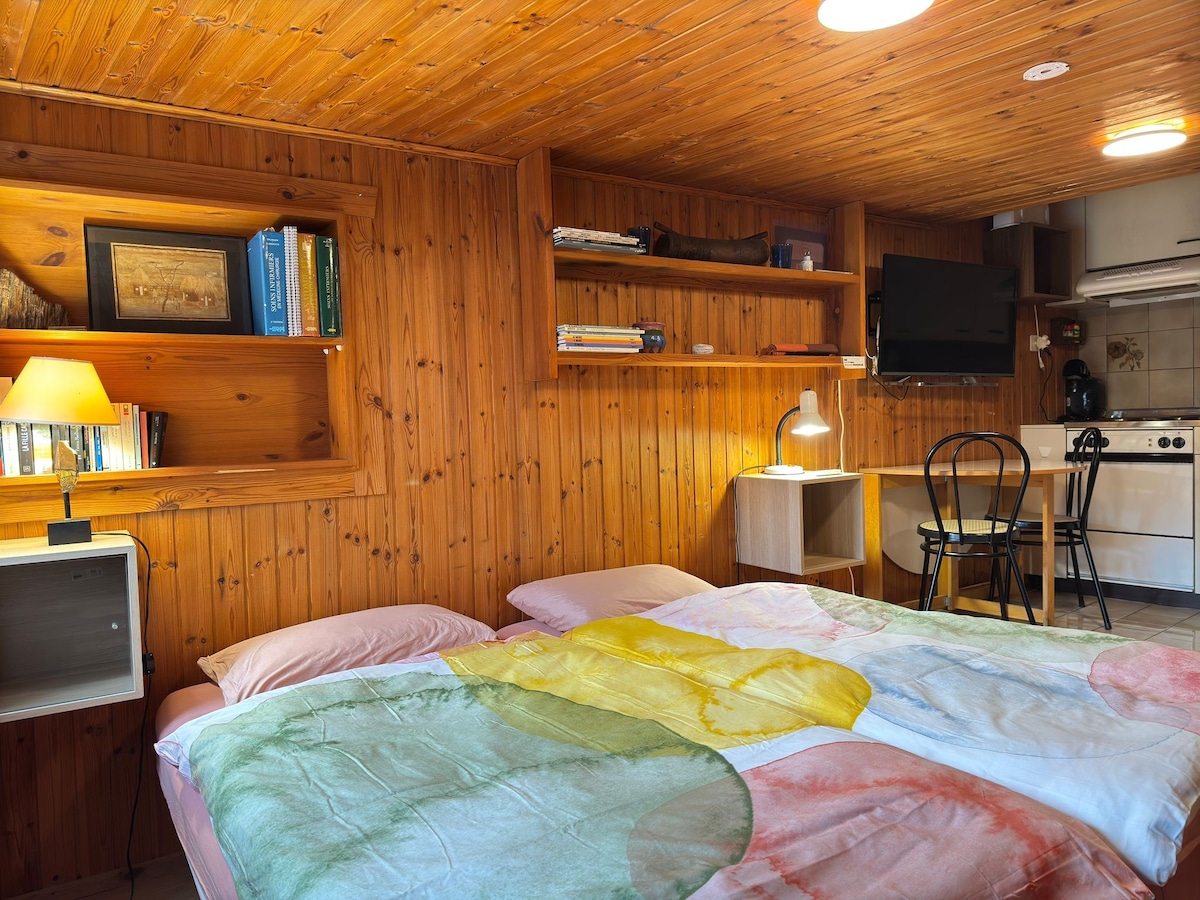Cozy studio (21 square meters ) near the center of Charming Crans-Montana, 10 minute walk to Ski slopes , next to lake Moubra and across from golf course ( cross country skiing in winter). For a stay of 7 days or more, I offer a breakfast!!!