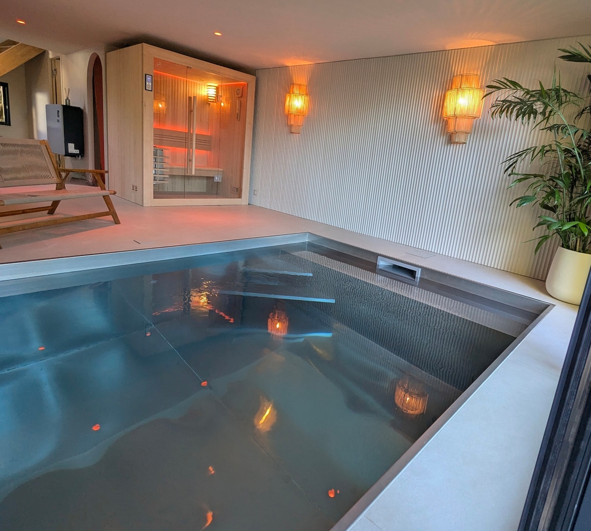 市中心的普通民宅,带游泳池和按摩浴缸