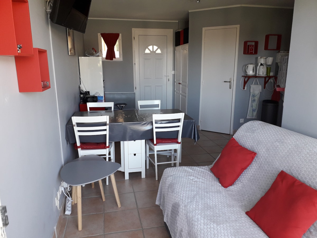 Accueil chaleureux dans logement privatif, entrée indépendante), dans jardin familial comprenant: - 1 lit 160 mémoire de forme (draps en option) - Cuisine, avec plaques induction, four/micro-ondes (+sofa convertible pour 2 couchages) - salon - salle de bain avec douche et WC - Piscine Partagee chauffée et couverte (en saison) - TV/Wi-fi - Parking clos pour 1 voiture - Bus de ville: 8mn à pieds (98) - supplement 15€/lit pour les draps possible - Il n'y a pas de machine à laver