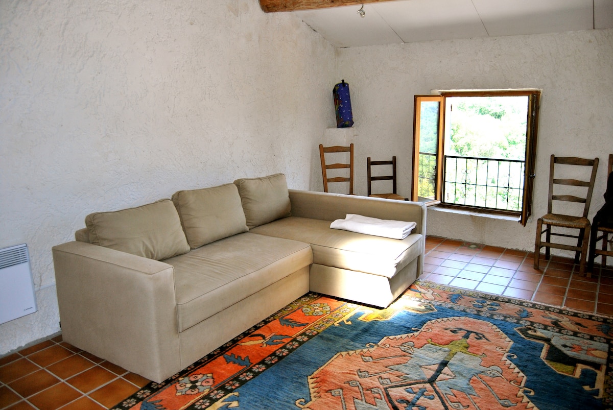 Charmant deux-pièces au cœur des oliviers. Venez séjourner dans ce ravissant logement de caractère, adossé au plus ancien mas du village, en plein cœur de la Provence authentique. Entouré d’oliviers centenaires, ce havre de paix vous offre une grande terrasse ensoleillée et peut accueillir confortablement jusqu’à 4 personnes. Le logement se compose d’une chambre avec salle de bain attenante, d’un salon chaleureux avec cuisine ouverte, ainsi que d’une mezzanine aménagée en seconde chambre.