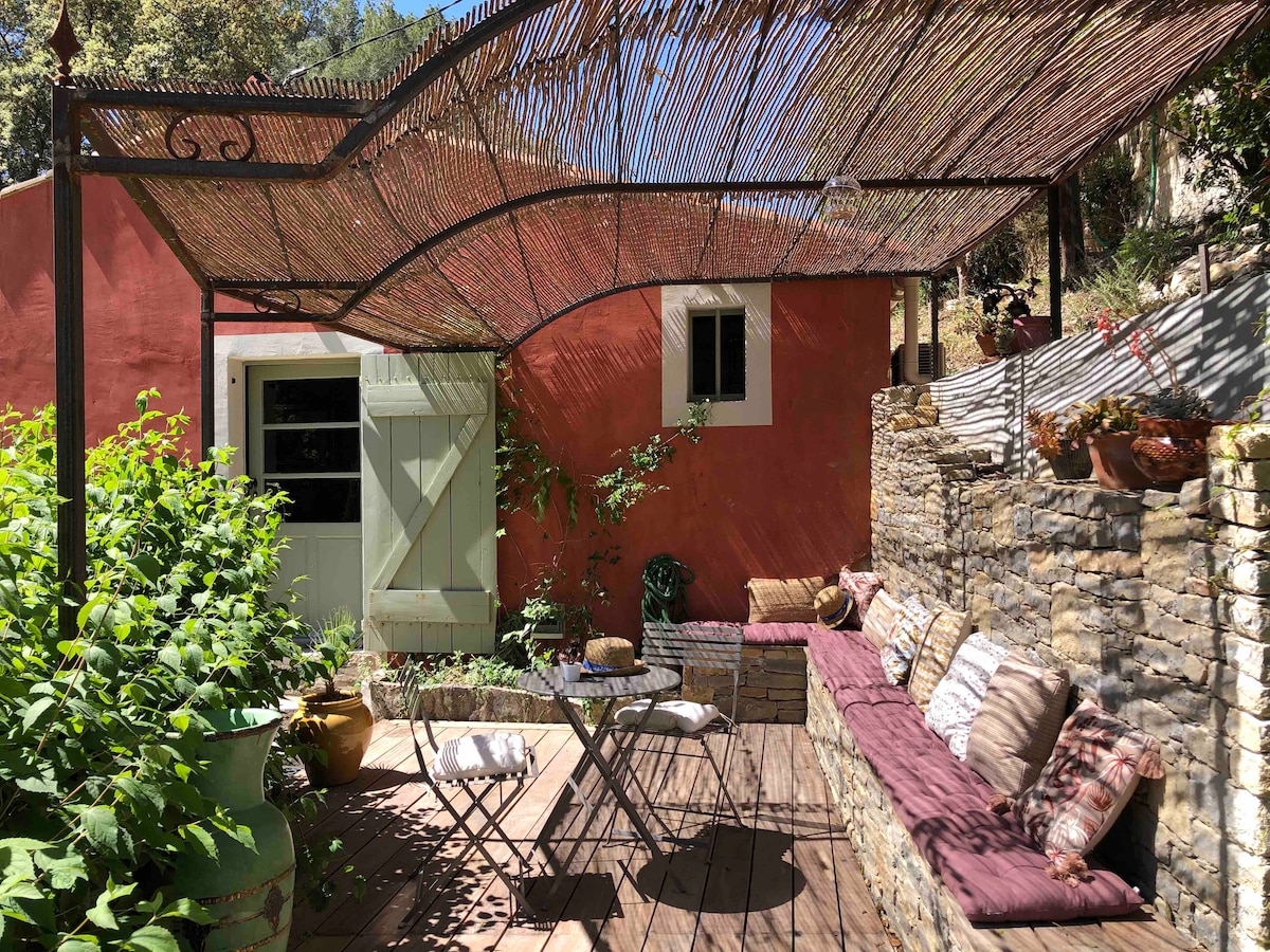 We are delighted to welcome you to our 18th century country house in local stone. We have restored it with passion and we hope that it will make you spend a very nice stay. It's an independent house from our main house.You will have a beautiful terrace, a large air-conditioned bedroom with a 160cm bed, a reading corner, a kitchen equipped with a fridge and a microwave and a small dining area. The small retro bathroom has a walk-in shower.