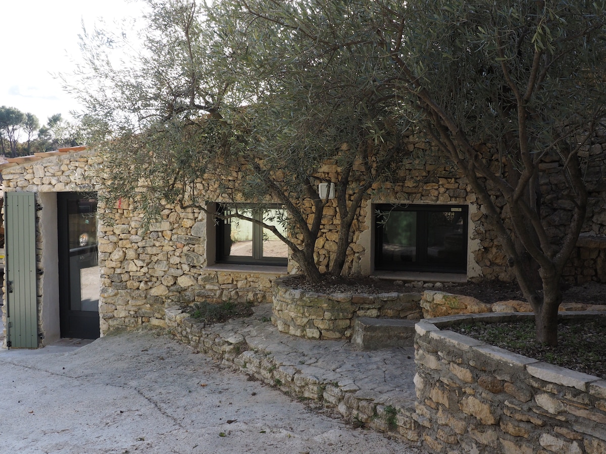 Dépendance d'un mas provençal du XVIIe siècle, exploitation agricole de production d'huile d'olive. Le Pigeonnier est une habitation de plain pied indépendante du mas avec une salle de bain équipée d’une douche italienne,une chambre avec un lit double, une salle à manger cuisine ,une belle salle voûtée salon ancien rendez vous de chasse et une véranda.