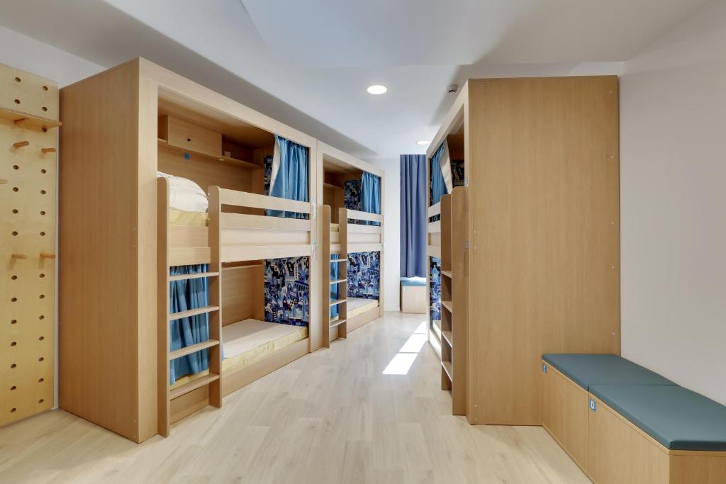 En famille, entre amis ou seul(e), choisissez nos chambres de 8 avec salle de bain privée. Vous y trouverez nos lits « capsule », designs et confortables en bois massif, 100% sur mesure et fabriqués en France. Chaque lit dispose d’une liseuse, une prise électrique et USB, un casier sécurisé, un miroir et un rideau opaque pour une parfaite intimité. Des serviettes sont à louer à la reception.