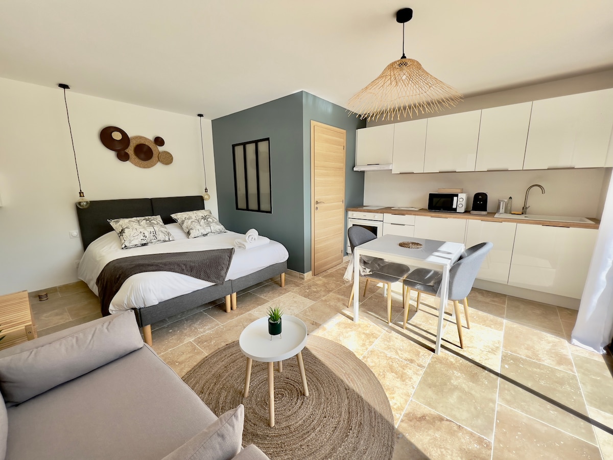 3 km from Aubagne and its santonniers, 30 minutes from Aix-en-Pce and its historic center, 30 minutes from Marseille and Mucem, 30 minutes from Cassis and its Calanques and 20 minutes from La Ciotat and beaches, our small Provençal house of 35 m2 is comfortable and cozy, with its parking, its loggia, its pretty shaded garden of 1000 m2 and its breathtaking view of the hills. Located opposite the site of La Font de Mai you can also discover all the hiking trails of Pagnol around Garlaban .