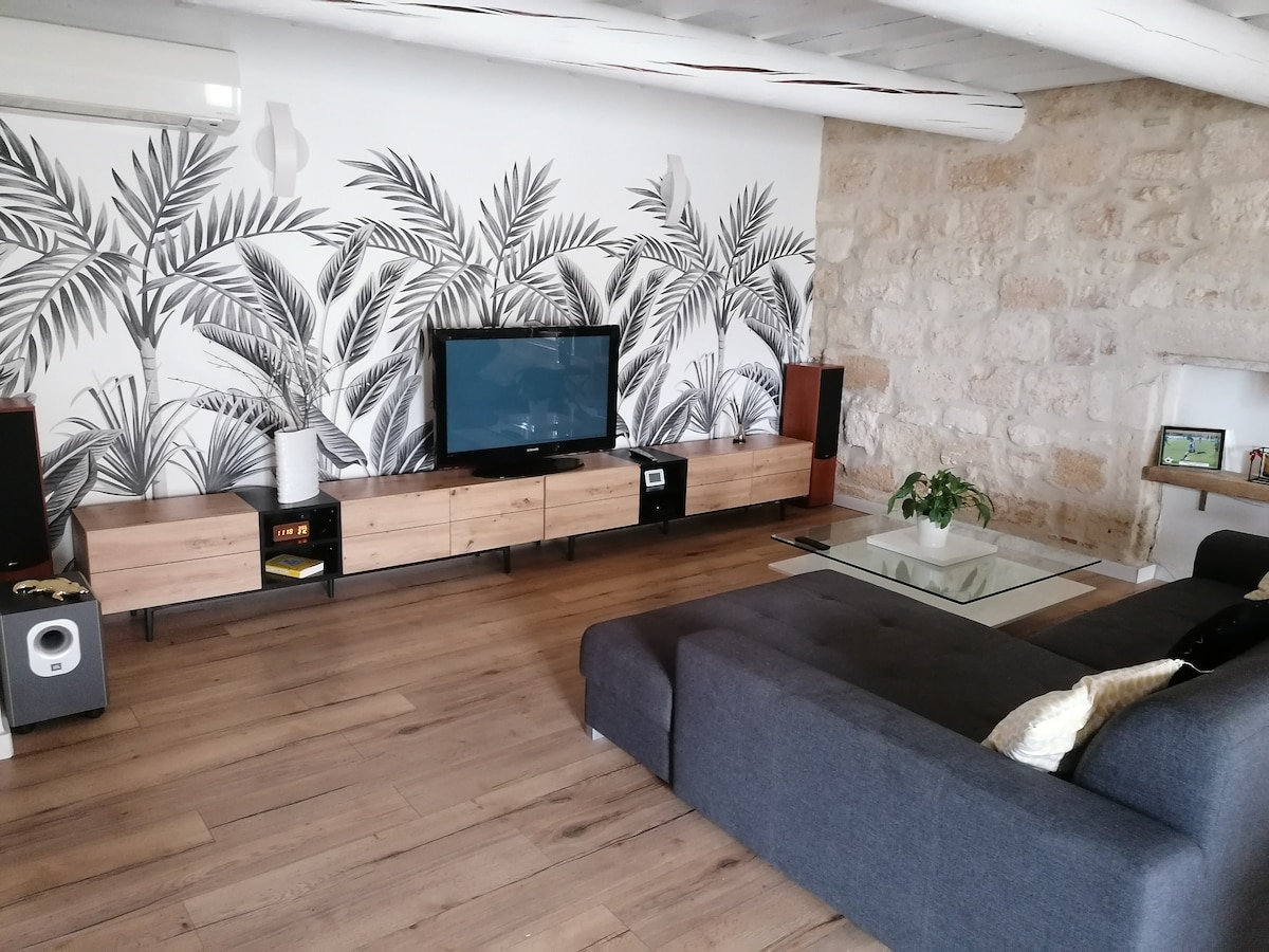 This unique accommodation is close to all attractions and amenities, making it easy to plan your trip. The house features air conditioning, a fully equipped kitchen, and a washing machine. A breathtaking terrace with a water point. A 180-degree view of the Arena, the Church of La Major (Church of the Guardians), the Luma Tower, the Alpilles, the Rhône, and, when the sky is clear, the Cévennes. The film "Cocagne" starring Fernandel was filmed in this house. We wait you..