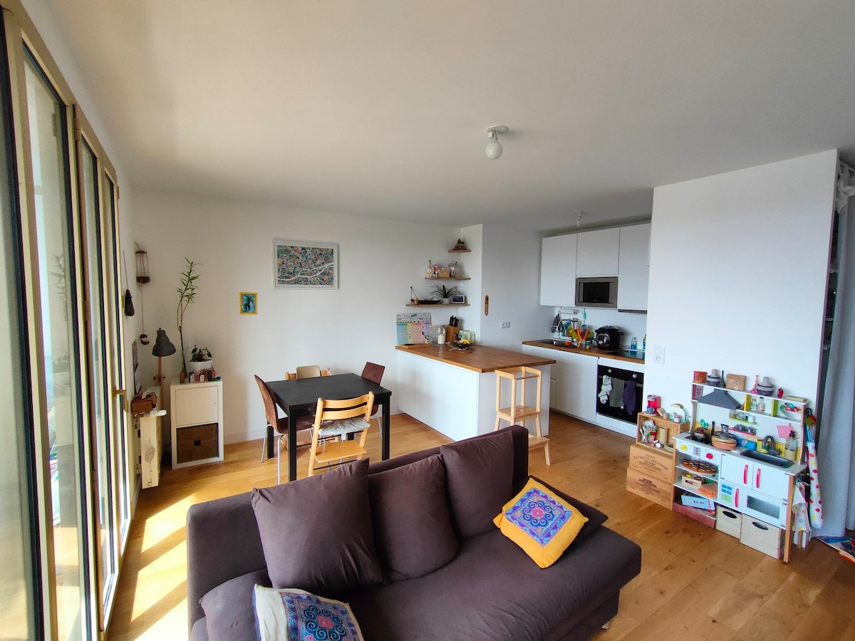 Profitez pleinement de cet appartement traversant et lumineux à la décoration soignée, rehaussée par la chaleur du bois. Parfaitement équipé, il possède une chambre donnant sur un jardin pour des nuits sereines. Possibilité de parking privé 25€/jour au lieu de 50€/jour dans la rue.