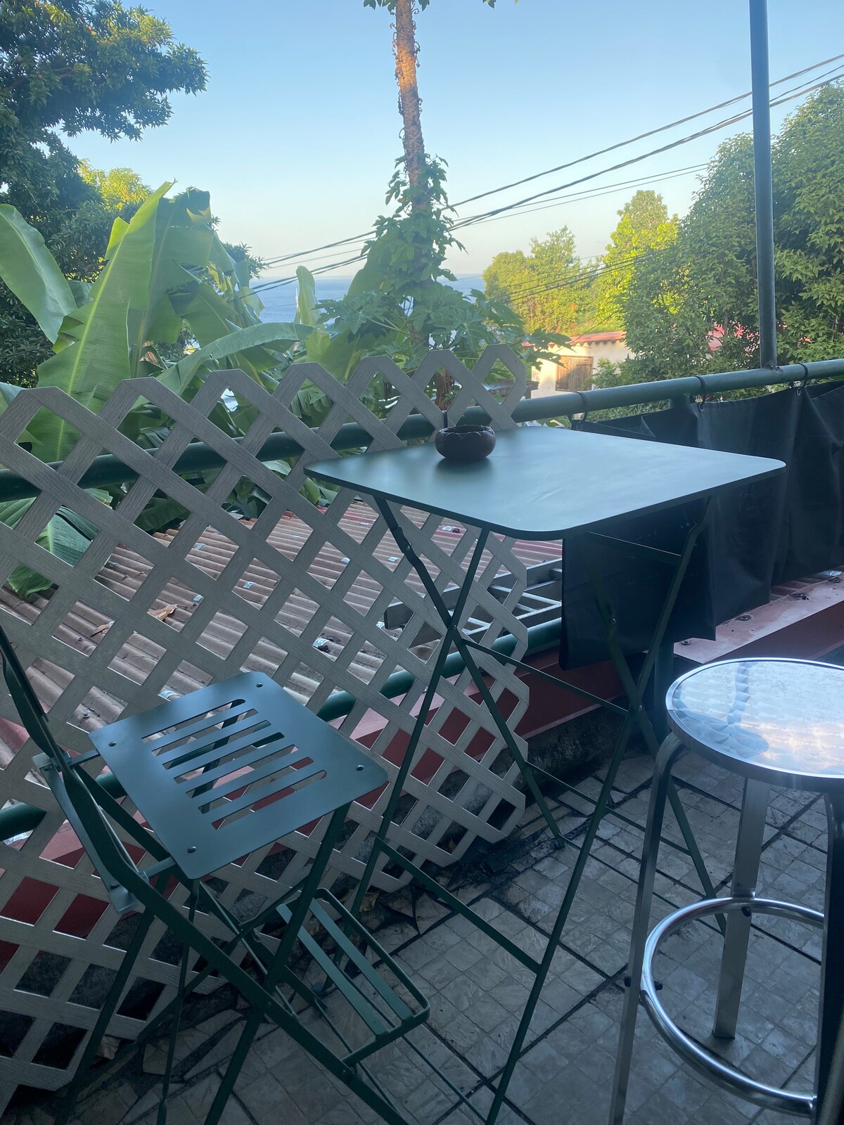 Charmant bungalow décoré avec goût situé entre mer et montagne, offrant une vue exceptionnelle sur les Saintes et Marie-Galante depuis une magnifique terrasse en bois avec jacuzzi. Vous pourrez apprécier la mer à perte de vue et profitez du confort de chacune des chambres ouvertes vers l'extérieur. Une localisation parfaite pour accéder aux chutes du carbet 10min, à la gare maritime pour les Saintes 7min, aux plages de sable noir 3min, à la Soufrière 25min.. Idéal pour les familles, amis...