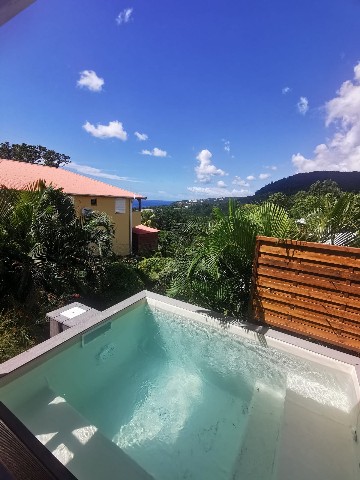 Découvrez Panorama Kréyòl, un bungalow sur pilotis offrant une vue spectaculaire sur la mer et les montagnes. Au cœur de la Basse-Terre, profitez d’un cadre en bois chaleureux, d’un jacuzzi privatif et d’une immersion totale dans la nature guadeloupéenne. Profitez de la proximité des plages idylliques, des randonnées vers la Soufrière, et des cascades. Climatisé et équipé d'une terrasse avec filet de catamaran, il offre confort et aventure. Un guide voyageur est inclus.