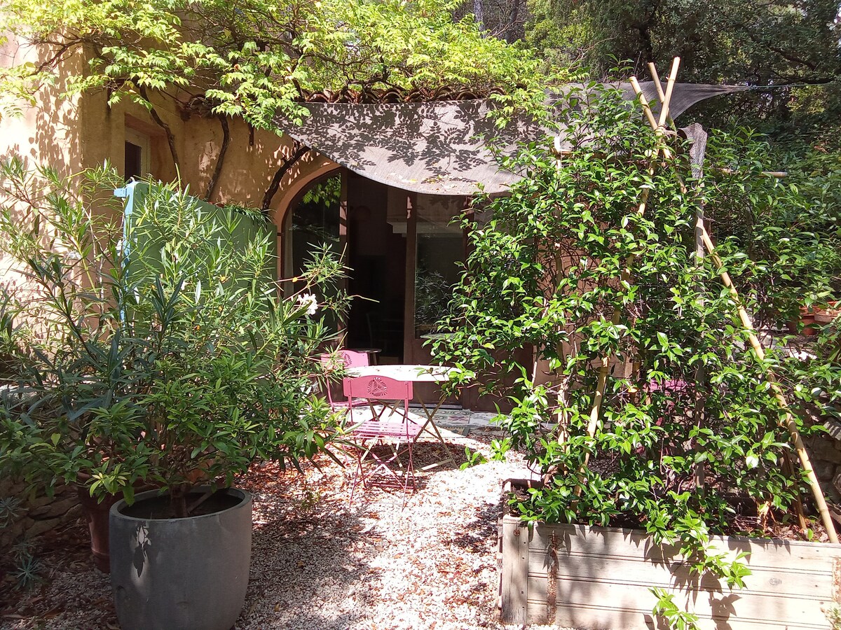 A l'abri du tumulte de la ville, sur le haut d'une colline de la garrigue Nîmoise, à environ 3 km de l'hypercentre, sur un terrain de 2140 m2, maisonnette, kitchenette équipée, + salle d'eau indépendante avec toilettes, espace extérieur, piscine non chauffée utilisable l'été, partagée avec la famille accueillante, parking assuré dans le jardin, bus à 200 mètres. Des dosettes de café, du thé, du sucre sont à votre disposition pour le petit déjeuner. Climatiseur inverter.