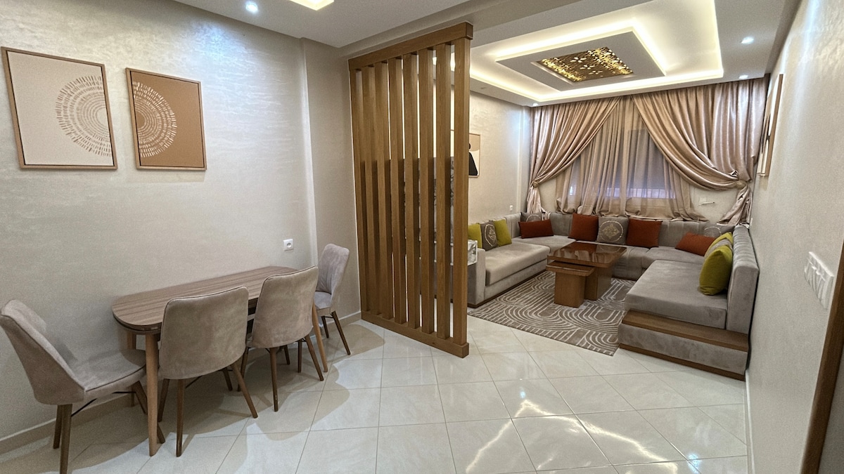 "Charming accommodation in Tangier! Discover a cozy bedroom, an original kitchen, a welcoming living room, and a sunny patio. Enjoy the comfort and style of this unique space." "Charmant hébergement à Tanger, situé en plein cœur de la ville ! Découvrez une chambre douillette, une cuisine originale, un salon accueillant et un patio ensoleillé. Profitez du confort et du style de cet espace unique."