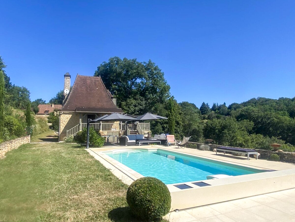 Maison indépendante sans vis-à-vis, en pierres située dans ancien hameau. Ce logement confortable vous séduira par sa décoration soignée ,son SPA privatif sera apprécié aprés de longues visites,son emplacement pour explorer Sarlat, les beaux villages,la vallée de la Dordogne, ses châteaux et tous les sites incontournables. Deux terrasses à votre disposition pour savourer un bon repas en plein air ou se détendre sur les transats. Eau du SPA changée aprés séjour. Piscine à partager propriétaire.